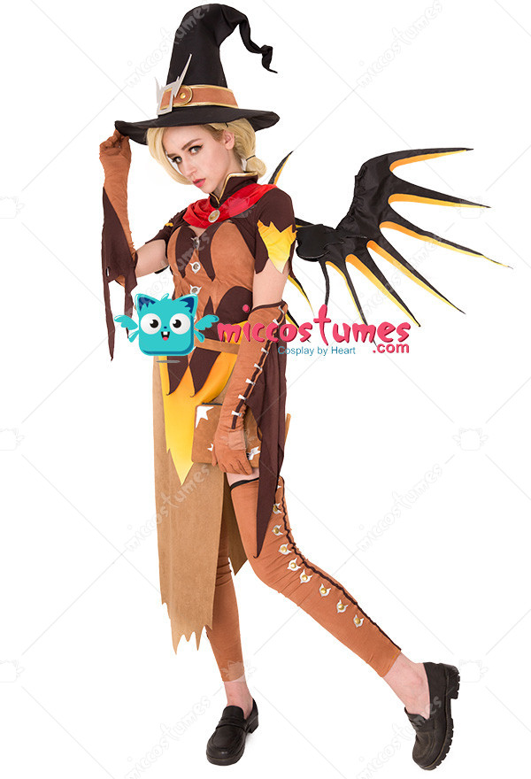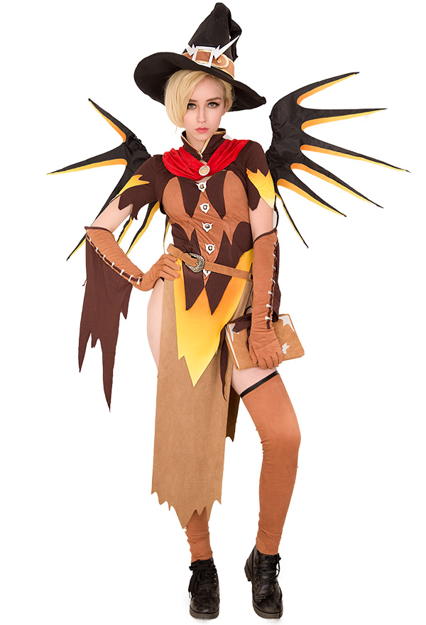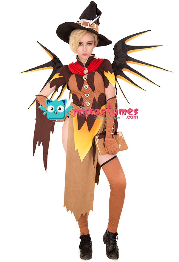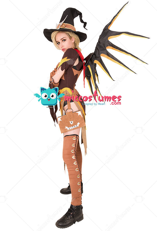 Overwatch Witch Mercy Cosplay Costume for Halloween with Wings