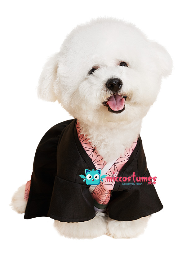 Costume Includes: pet costume. Material:uniform cloth. Design Details: The cut is Japanese kimono style and the waist is laced design.