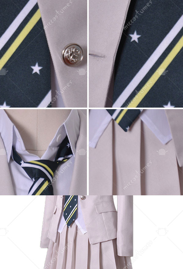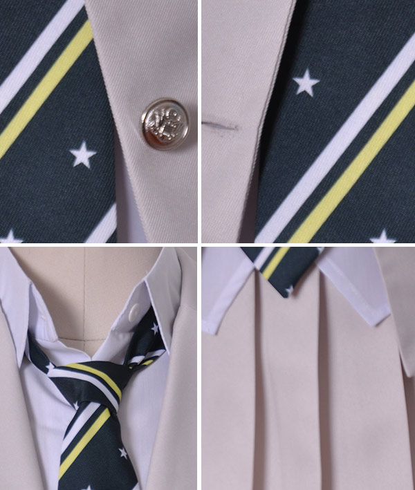 This costume includes coat, shirt, skirt, tie. It is made of uniform cloth.