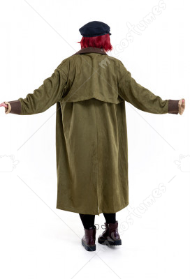 Costume Includes: Trench Coat, Dress, Belt, Gloves * 2, Hat, Scarf. Material: Rome cloth, PU leather, snap button, belt buckle.