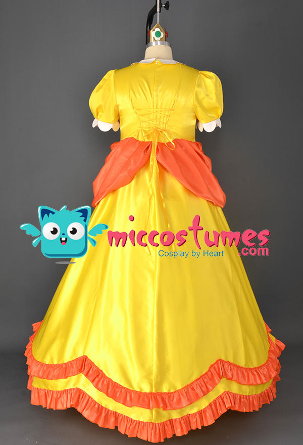 The costume includes dress, crown, earrings*2, gloves*2, petticoat. It is made of cotton and satin.