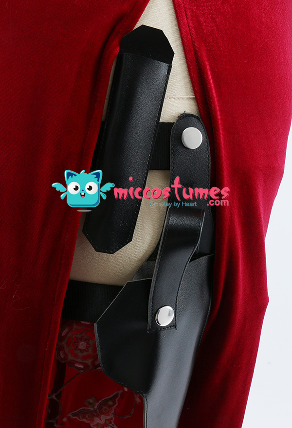 Costume Includes: dress, choker*1, holster*1, dagger scabbard*1. Materials: PU leather, velvet.