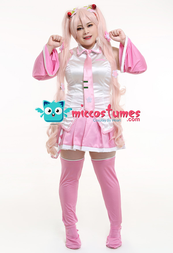 Plus Size Sakura Girl Curvy Cosplay Costume Woman Sleeveless Shirt Pink Skirt Full Set with Sakura Hair Pins