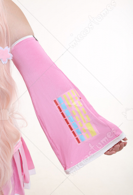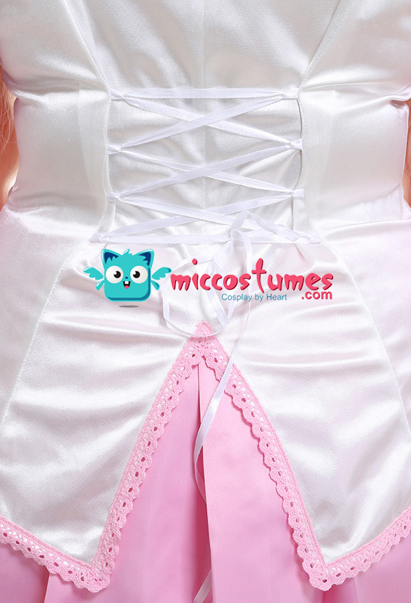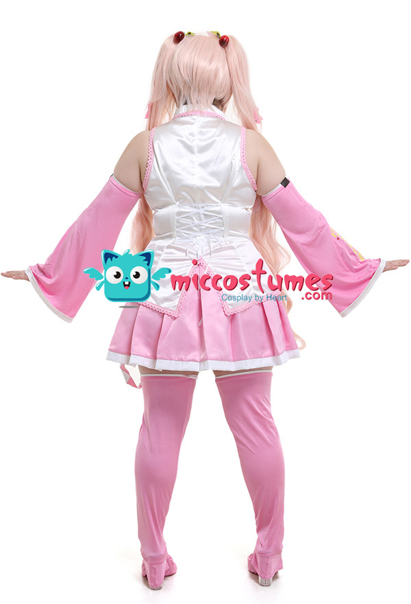 Costume Includes: top, skirt, arm cover*2, shoes cover*2, tie, hair accessory*8, cherry hair clip*2, red flower hair pin*2, pink flower hair pin*2. Material: satin, spandex.