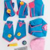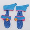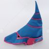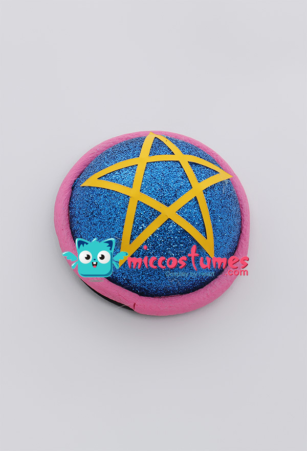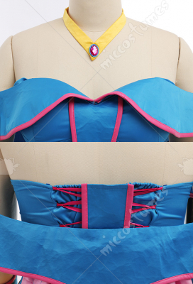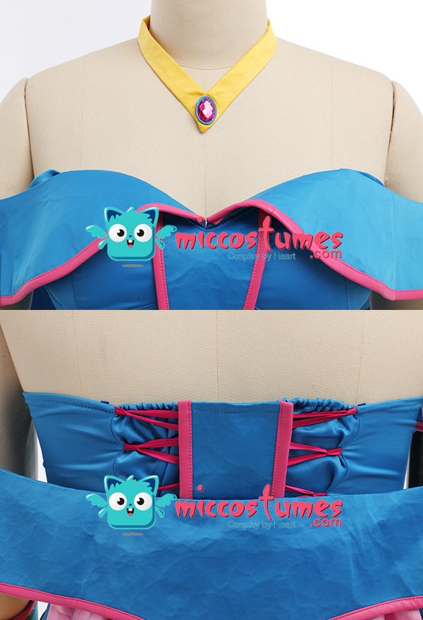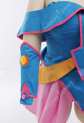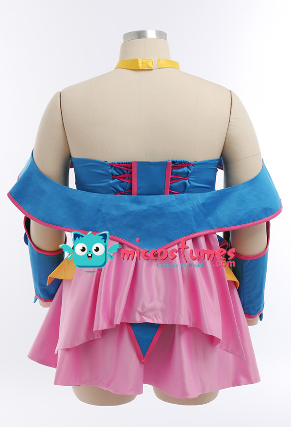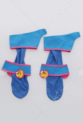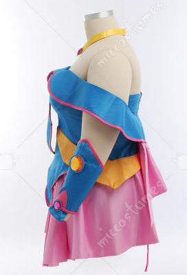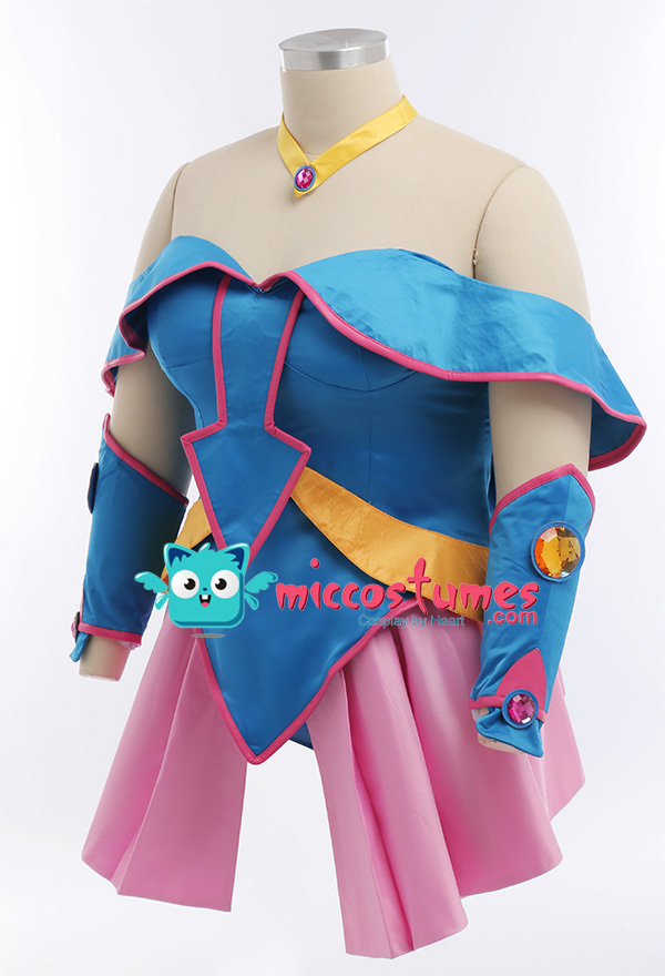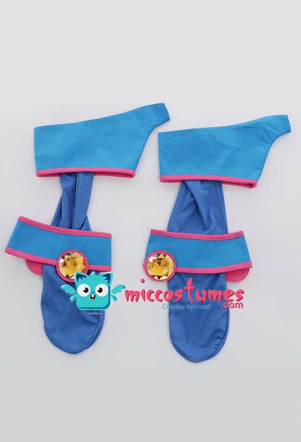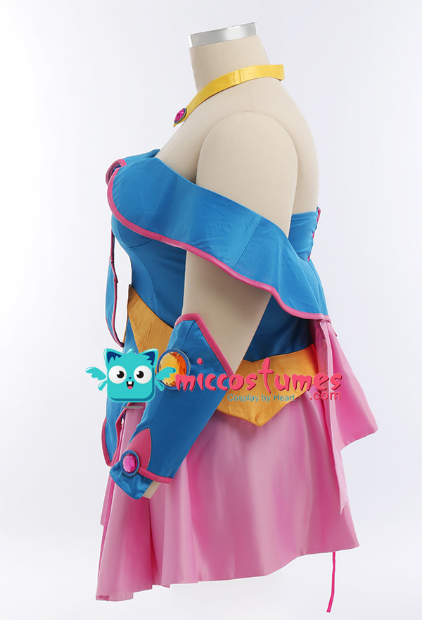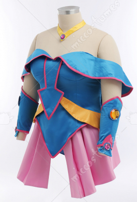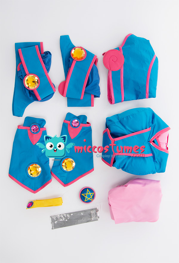 Costume Includes: witch hat, wristbands*2, top, skirt, shoe covers*2, neck accessory, chest accessory, transparent shoulder straps*2. Material: pu leather, knitting cloth, satin, shiny cotton, aluminum wire ( in witch hat ).