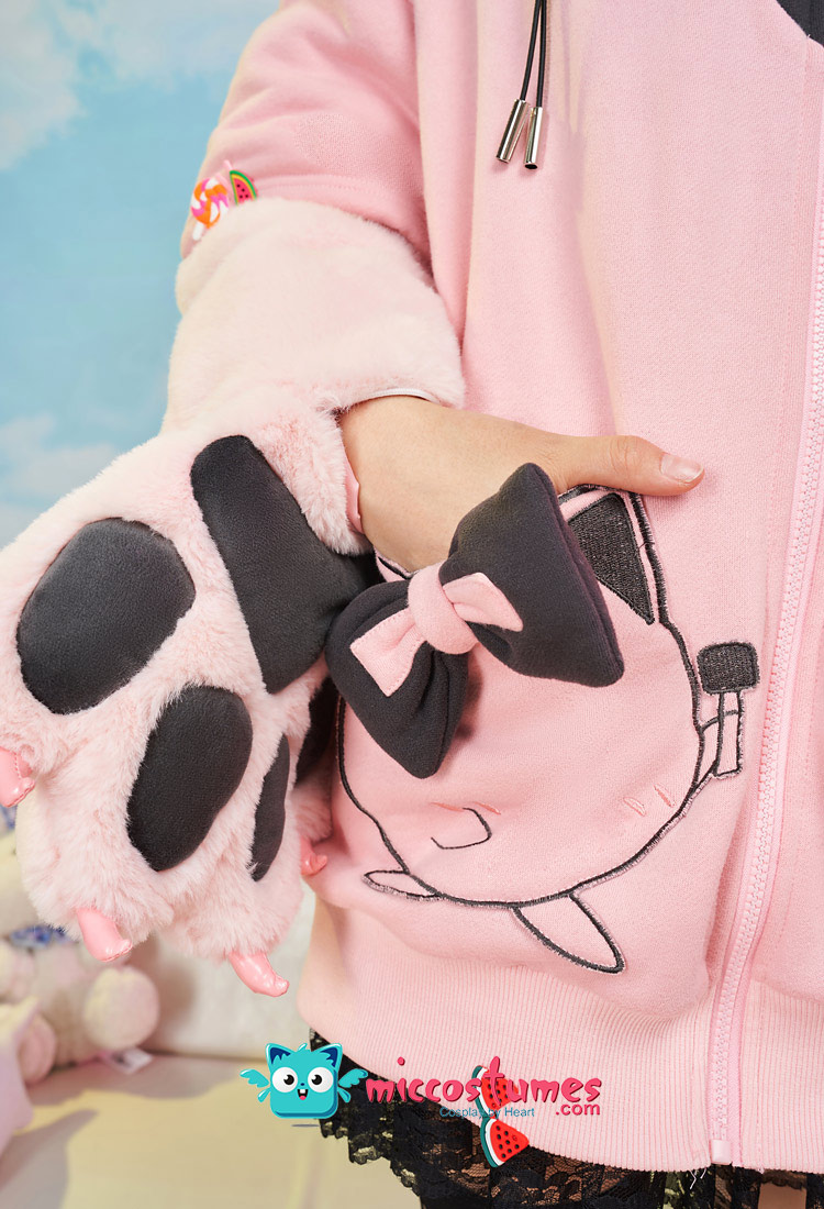 Design Details: 1. Inspiration Source – The hoodie is inspired from PM. With the ear hooded, the stylish prints and the furry paw gloves, it looks cute and cool. 2. Special Design – The detachable bag design furry paw is the highlight of this hoodie. The two long-sleeved paw gloves can be detached and used as two bags. 3. Soft & Cozy Materials – The main hoodie is made of high-quality sweatshirt fabric, which is breathable, light and comfortable. It’s specially suited for autumn and spring. The paw gloves are made of furry material, touching soft and comfortable. 4. Notes – There may be some floating fluff on the surface of the hoodie. We suggest you clean the stains with a wet towel as soon as possible once your hoodie is stained. Please do not wash frequently. It cannot be machine washed. Please do not add any chemical products when washing. For the Paw Gloves Design: 1. The paws are filled with cotton cushions and provided with heart designs to offer a cute and real look. 2. Hidden zippers are provided on the sleeves and inside the gloves’ wrists. You can remove the gloves via the zippers on the sleeves or unzip the gloves’ wrists to let your hands free. 3. The strap on the gloves can be a fashion icon and can also be used to sling the bag design gloves over your shoulders. 4. The material used for gloves is super-soft and cozy to keep your hands always in a warm state.