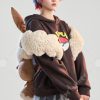 Bag zipper length: 14.5 cm/5.7 inches. The zipper is located on the back of the bag. The bag is filled with soft cotton. It can hold keys, napkins, lipstick, mobile phones and other small items, and the capacity is not large. It can be used as a plush doll. The plush shoulder strap is detachable, which makes the bag suitable for all seasons. There are aluminum wires inside the ear, you can make the ear stand up or bend down by adjusting the aluminum wire
