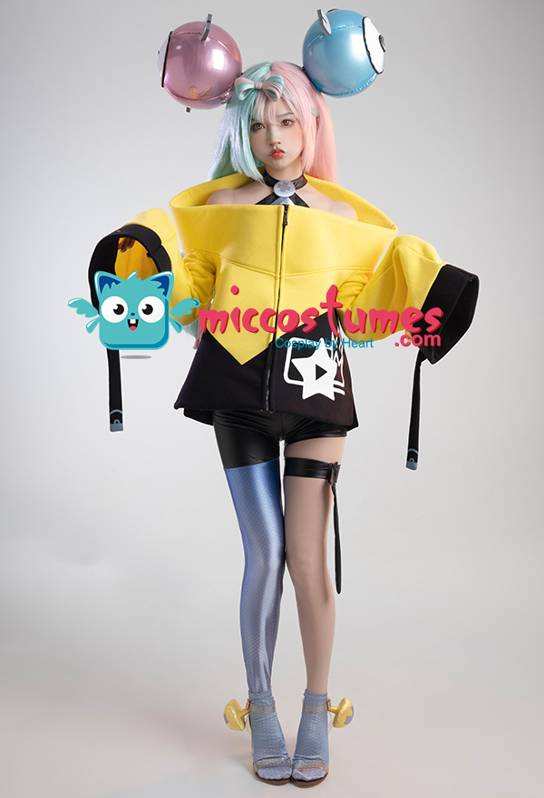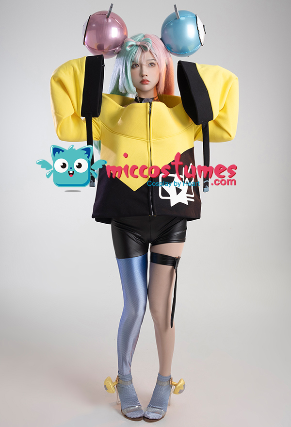 Design Details: The jacket is digitally printed with bright polyester fabric, which perfectly restores the texture of the character's jacket. The high-quality hoodie material is interlayered with eva, and the special shoulder collar is cut to restore the crisp and three-dimensional feeling of the character's costume. The matching headdresses assembly material kit and tools can restore the headdresses with simple operations, and then match the socks to restore Iono in one stop.