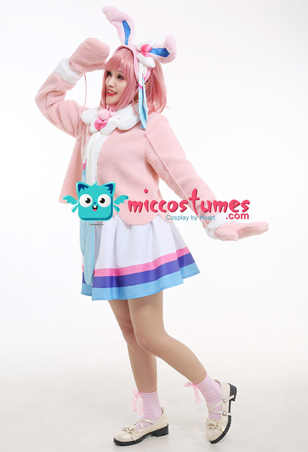 Costume Includes: velvet coat, skirt, headdress, gloves, big bow accessory, socks*2. Material: polyester, short plush, polar fleece, lining cloth. Design Details: The hairband is fixed bow with ribbon, and the bow scarf on the chest can be worn with disc pin. The skirt waist is of adjustable design. For the hem, headdress bow accessory, chest bow accessory, they are all printed. The gloves are with a rope, so you can hang it through the neck.