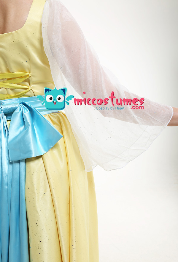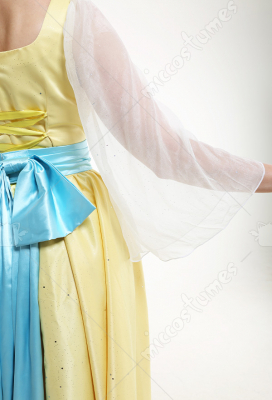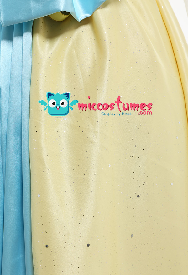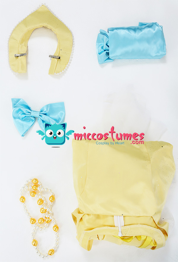Costume Includes: dress, crown, waist belt, necklace, headdress bow. Material: chiffon. Design Details: The crown and the headdress bow are with duckbills on both sides, which can be worn in fixed on the wig nicely. The shiny belt can be worn velcro on the back side. Besides, the whole dress is decorated with fine flashes, which can be very luxurious.