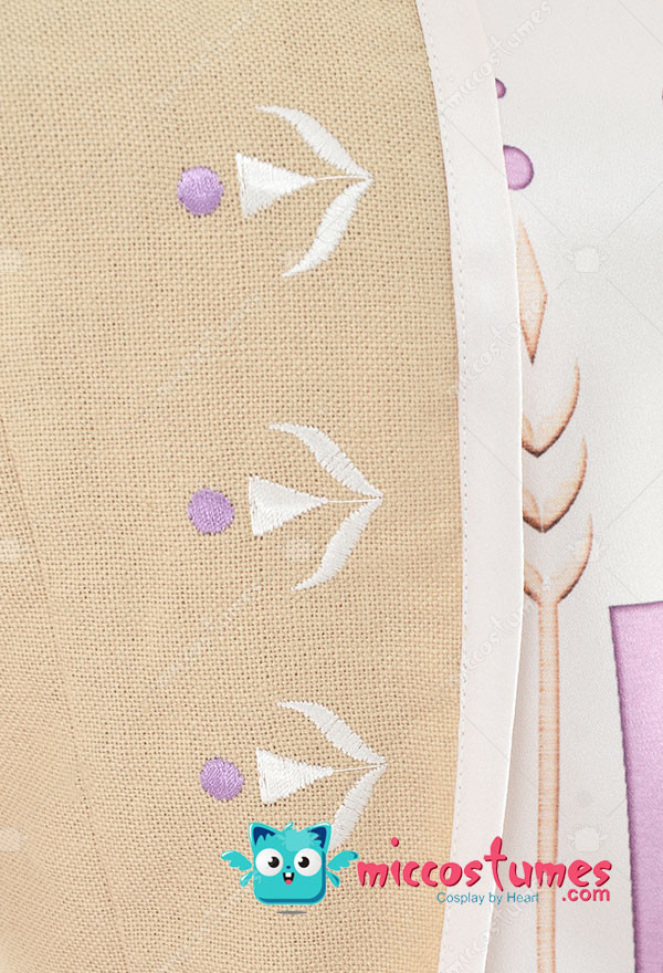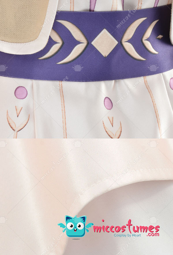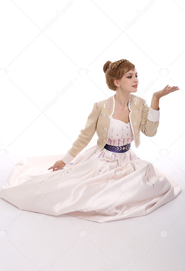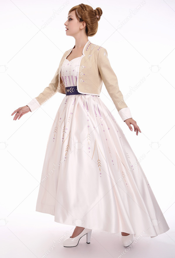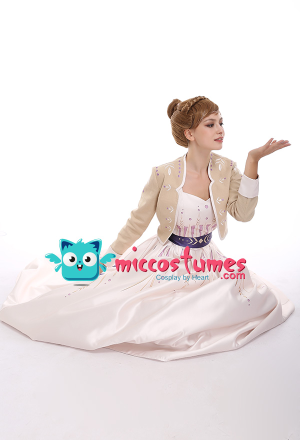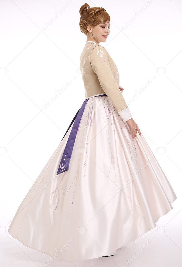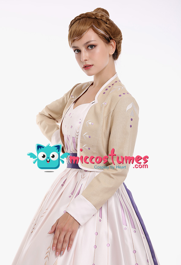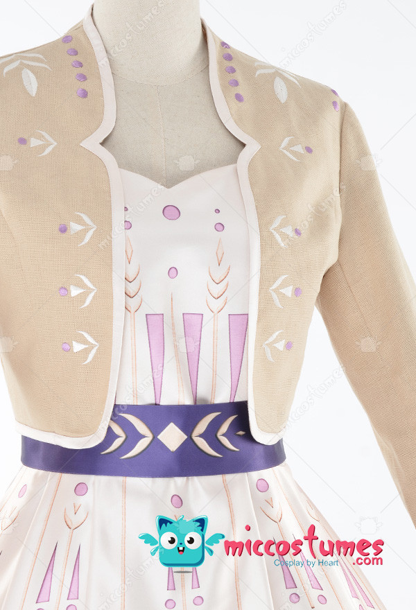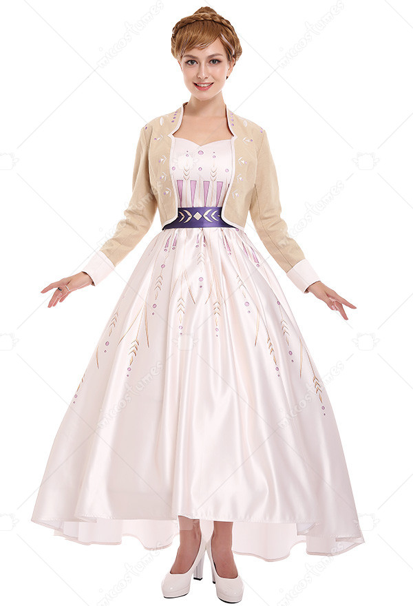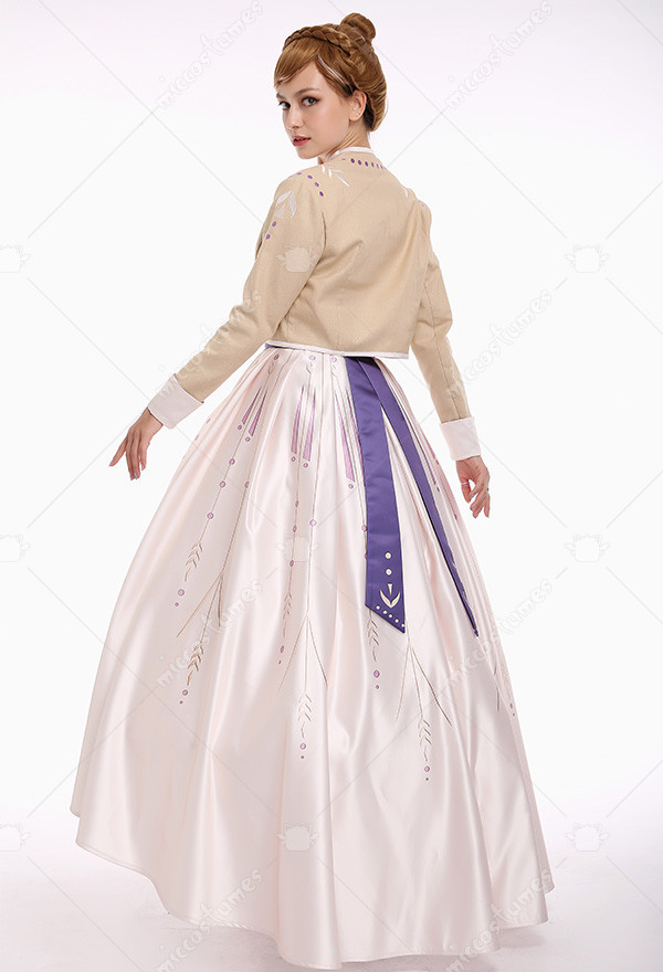 The costume includes coat, dress, belt, petticoat. It is made of spandex, satin, linen fabric.
