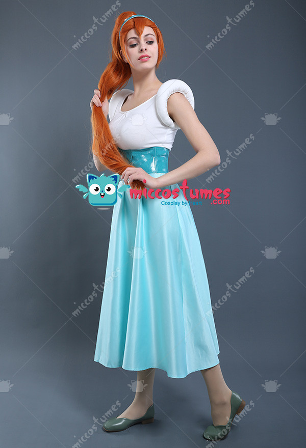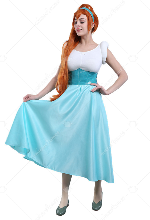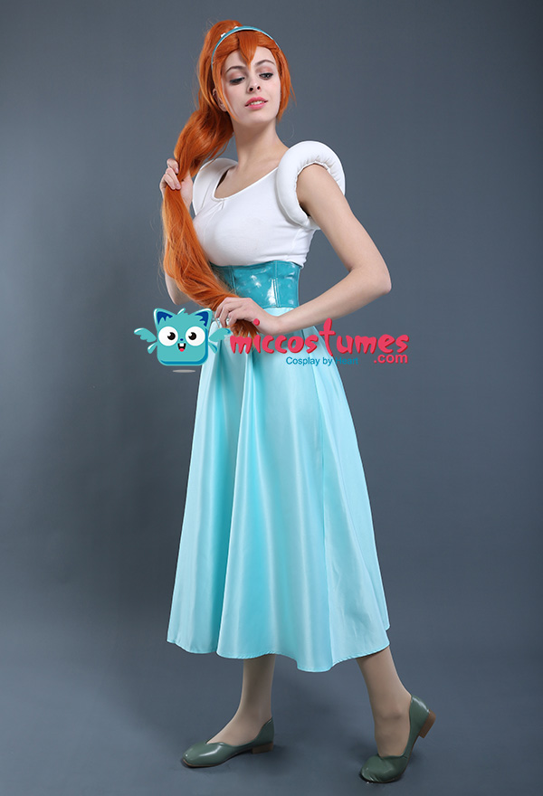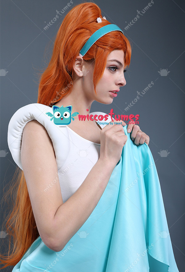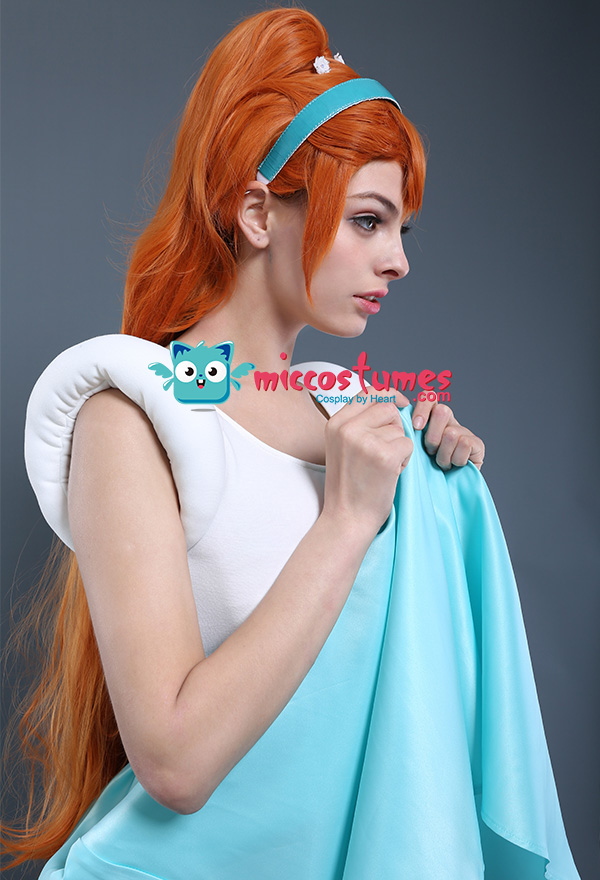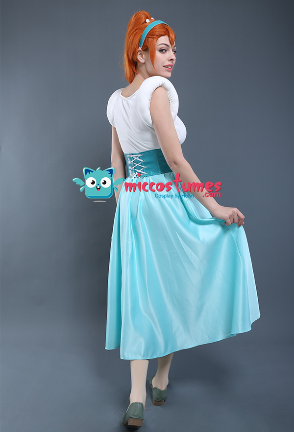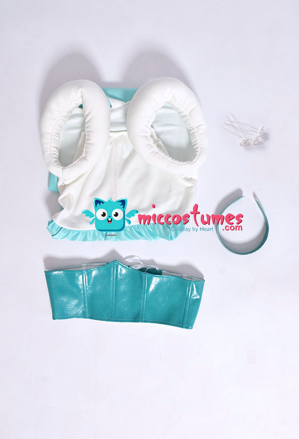 The costume includes dress, hairband, flower hair accessories*3, corset. It is made of knitted fabric, PU leather, satin, linning cloth, cotton.