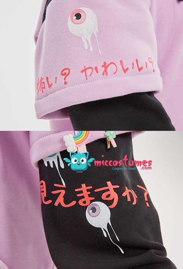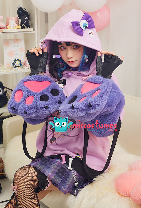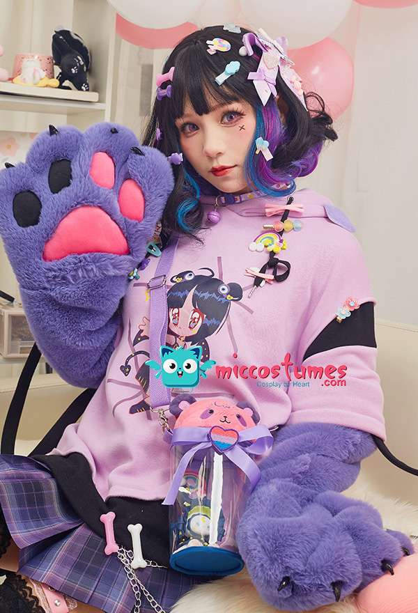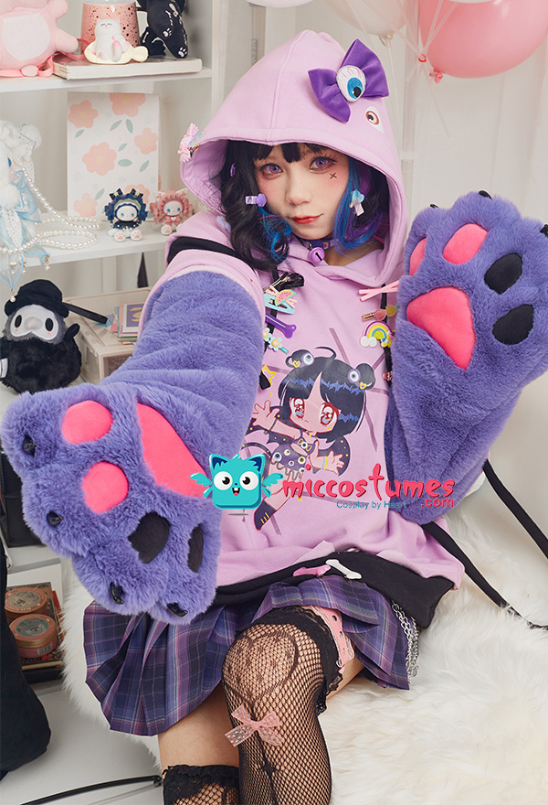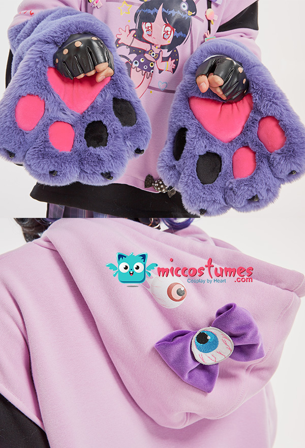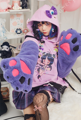 Note: It only includes one hoodie (included two detachable paw gloves and two straps). It doesn't contain any other accessories. We'll randomly give some small clips as the free gifts. Design Details: 1. Inspiration Source – The hoodie is inspired from the Harajuku style and eyeballs pattern as the prototype. With the eyeballs pattern design, and Harajuku style girl print in the front of the hoodie, it looks very unique. 2. Special Design – The detachable bag design furry paw is the highlight of this hoodie. The two long-sleeved paw gloves can be detached and used as two bags. 3. Soft & Cozy Materials – The main hoodie is made of high-quality sweatshirt fabric, which is breathable, light and comfortable. It’s specially suited for autumn and spring. The paw gloves use furry material which is soft and comfortable. 4. Notes – There may be some floating fluff on the surface of the hoodie. We suggest you clean the stains with wet towel as soon as possible once your hoodie is stained. Please do not wash frequently. It cannot be machine washed. Please do not add any chemical products when washing. For the Paw Gloves Design: 1. The paws are filled with cotton cushions and provided with heart designs to offer a cute and real look. 2. Hidden zippers are provided on the sleeves and inside the gloves’ wrists. You can remove the gloves via the zippers on the sleeves or unzip the gloves’ wrists to let your hands free. 3. The strap on the gloves can be a fashion icon and can also be used to sling the bag design gloves over your shoulders. 4. The material used for gloves is super-soft and cozy to keep your hands always in a warm state.