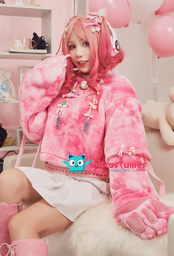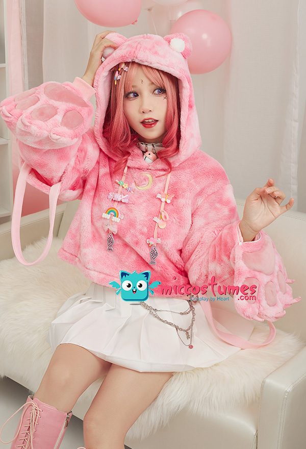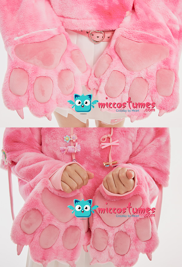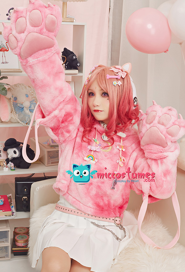 Note: It only includes one hoodie (included two detachable paw gloves and two straps). It doesn't contain any other accessories. We'll randomly give some small clips as the free gifts. Design Details: 1. Inspiration Source – The hoodie is inspired from pink camouflage design and cat as the prototype. With cute cat paw gloves and cat ear hooded, the pink camouflage print design, and moon pattern print in the front of the hoodie,, this hoodie looks very kawaii. 2. Special Design – The detachable bag design furry paw is the highlight of this hoodie. The two long-sleeved paw gloves can be detached and used as two bags. 3. Soft & Cozy Materials – The thick hoodie is made of super-soft cozy materials, perfect for winter days. The paw gloves use furry material which is soft and comfortable. 4. Notes – There may be some floating fluff on the surface of the hoodie. We suggest you clean the stains with wet towel as soon as possible once your hoodie is stained. Please do not wash frequently. It cannot be machine washed. Please do not add any chemical products when washing. For the Paw Gloves Design: 1. The paws are filled with cotton cushions and provided with heart designs to offer a cute and real look. 2. Hidden zippers are provided on the sleeves and inside the gloves’ wrists. You can remove the gloves via the zippers on the sleeves or unzip the gloves’ wrists to let your hands free. 3. The strap on the gloves can be a fashion icon and can also be used to sling the bag design gloves over your shoulders. 4. The material used for gloves is super-soft and cozy to keep your hands always in a warm state.