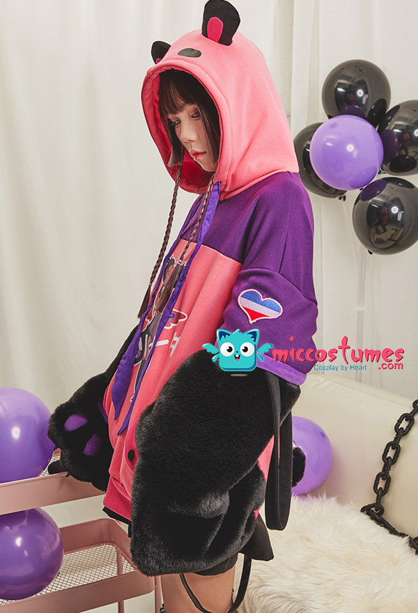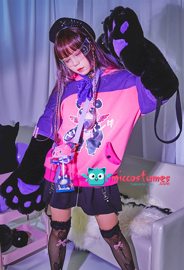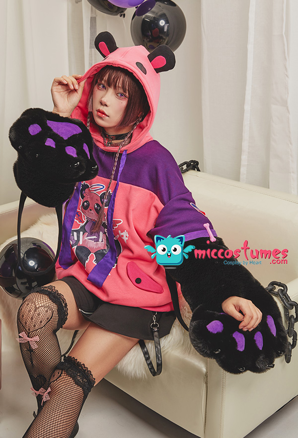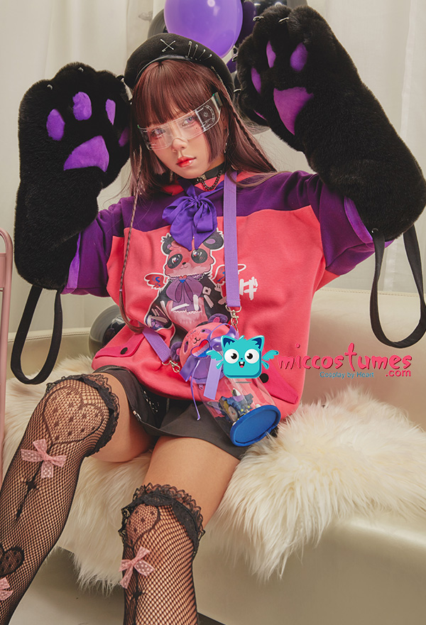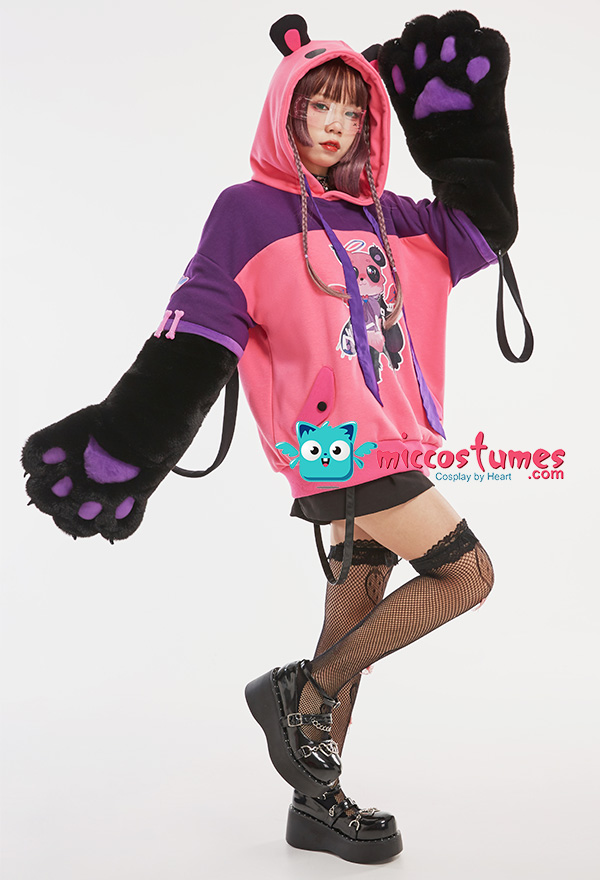 Note: It only includes one hoodie (included two detachable paw gloves and two straps). It doesn't contain any other accessories. We'll randomly give some small clips as the free gifts. Design Details: 1. Inspiration Source – The hoodie is designed with cat and panda as the prototype. With the panda ear hood and pattern and the furry cat paw gloves, it looks cute and cool. 2. Special Design – The detachable bag design furry paw is the highlight of this hoodie. The two long-sleeved paw gloves can be detached and used as two bags. 3. Soft & Cozy Materials – The main hoodie is made of high-quality sweatshirt fabric, which is breathable, light and comfortable. It’s specially suited for autumn and spring. The paw gloves are made of furry material, touching soft and comfortable. 4. Notes – There may be some floating fluff on the surface of the hoodie. We suggest you clean the stains with wet towel as soon as possible once your hoodie is stained. Please do not wash frequently. It cannot be machine washed. Please do not add any chemical products when washing. For the Paw Gloves Design: 1. The paws are filled with cotton cushions and provided with heart designs to offer a cute and real look. 2. Hidden zippers are provided on the sleeves and inside the gloves’ wrists. You can remove the gloves via the zippers on the sleeves or unzip the gloves’ wrists to let your hands free. 3. The strap on the gloves can be a fashion icon and can also be used to sling the bag design gloves over your shoulders. 4. The material used for gloves is super-soft and cozy to keep your hands always in a warm state.
