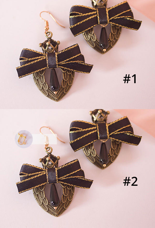 Notice: The bronze accessory is processed by natural antique finish technique, so the color may be uneven, darkened or yellowed. It is a normal phenomenon, not a quality issue. #1 : 925 gold-plated silver hook. #2 : alloy ear clip.