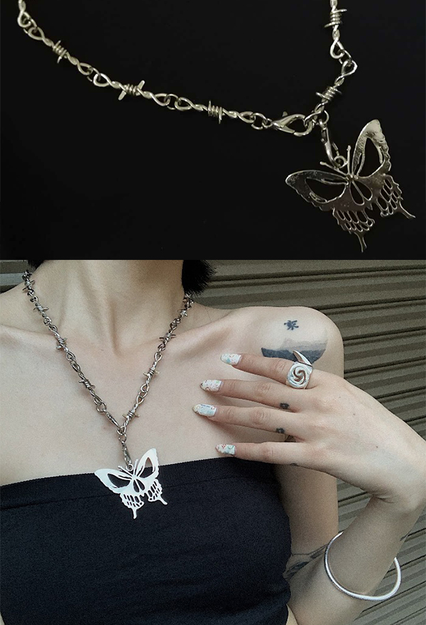 Be the first to review “Punk Hiphop Dark Style Butterfly Pendant Clavicle Chain Necklace Gothic Metal Collarbone Chain Neck Accessory”