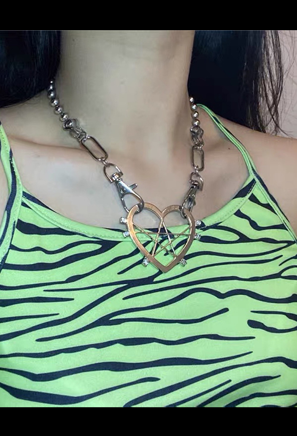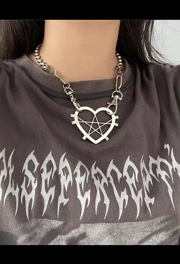 Punk Hiphop Style Pentagram Heart Hollow Geometric Clavicle Chain Necklace Metal Collarbone Chain Neck Accessory