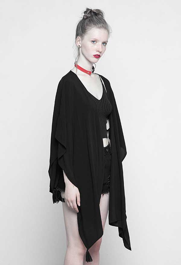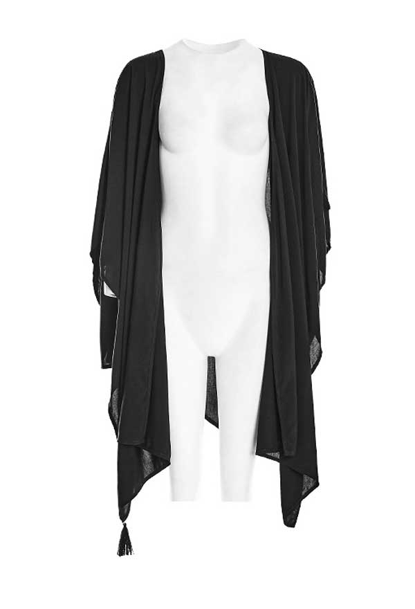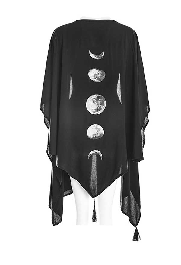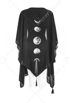 Costume Includes: cover-up. Material: cotton. Design Details: The cover-up is made of cotton fabric and is designed as one thin piece which can better shape. The lunar eslipse printed pattern adds sense of mystery and the tassel decorations look rhythmic.