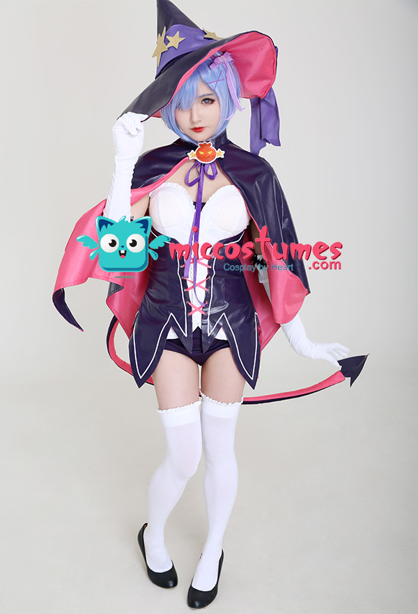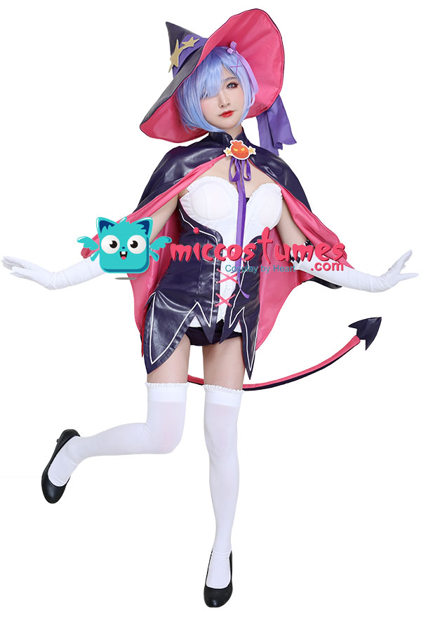 Re Zero Starting Life in Another World Rem Halloween Little Devil Witch Cosplay Costume Dress with Hat and Tail