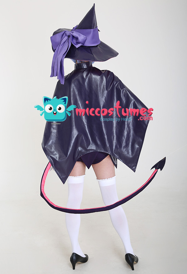 The costume includes hat, headdress*1, chest accessory*1, cloak, invisible bra strap*2, glove*2, corset, tail, stockings, panty. It is made of spandex, PU leather, satin, aluminium wire, iron wire.