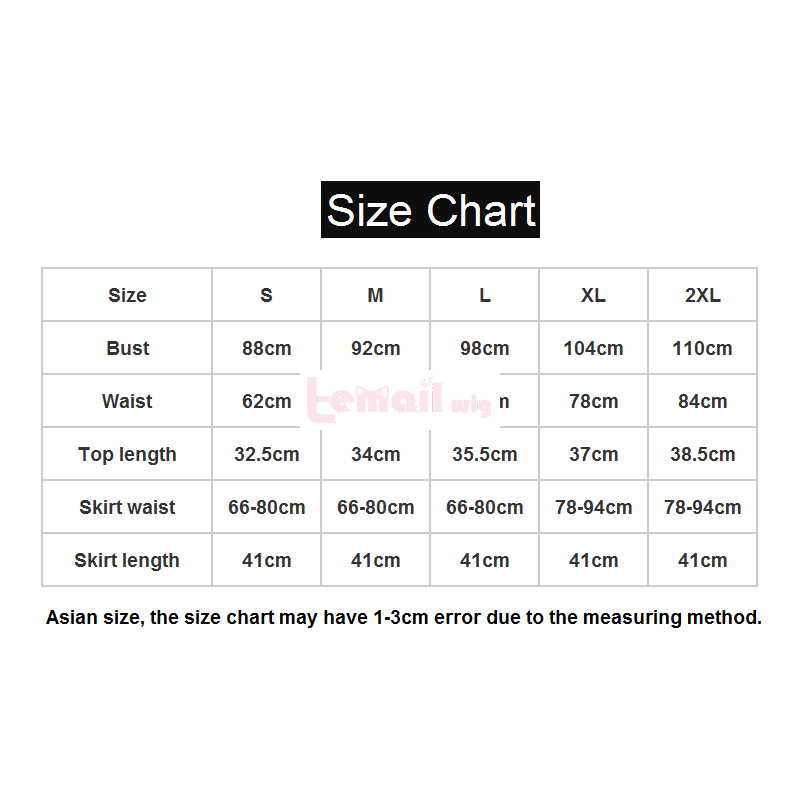 | Skirt waist | 66-80cm | 66-80cm | 66-80cm | 78-94cm | 78-94cm |