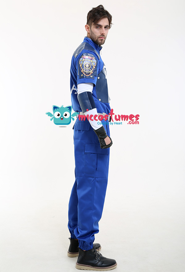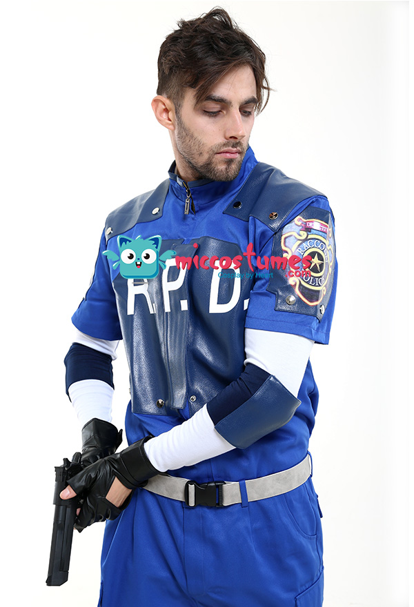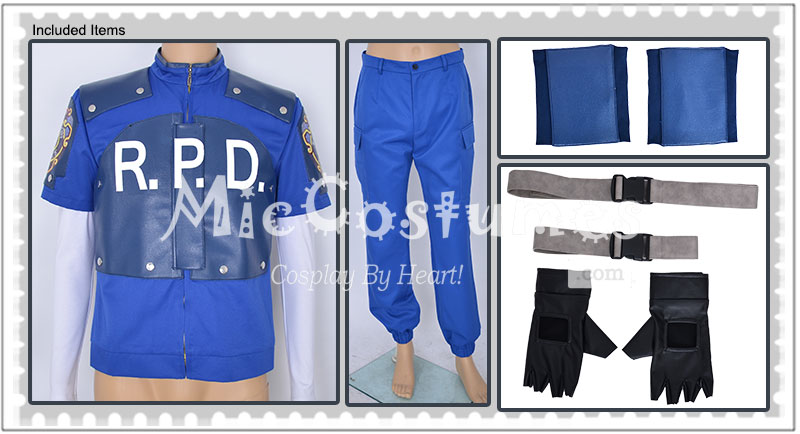This costume includes the fake two-piece top, trousers, gloves×2, belt sets, arm guards. It is made of uniform cloth, knitting fabric, PU leather.