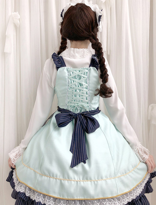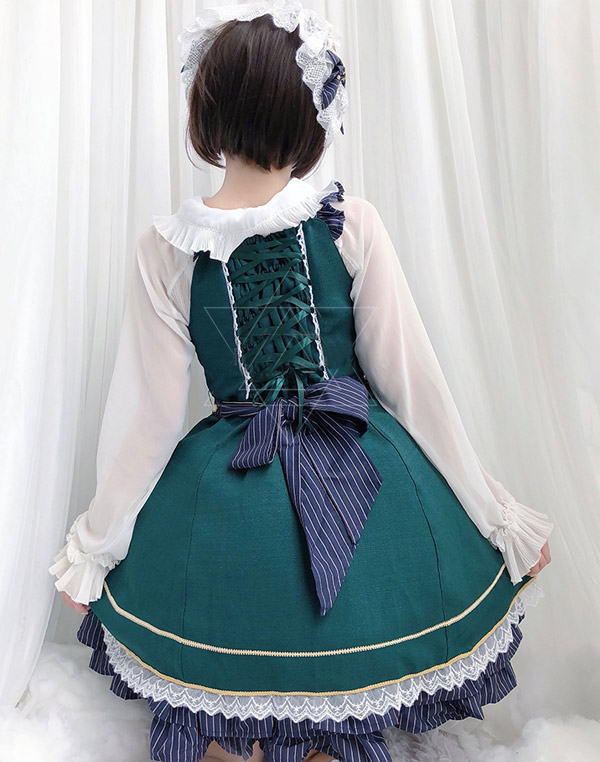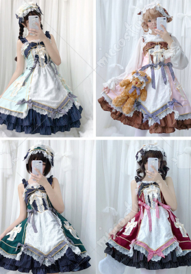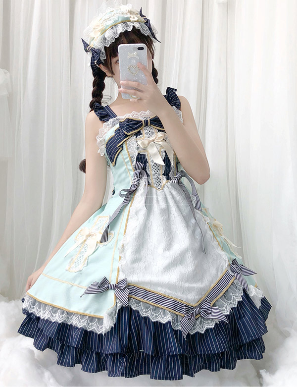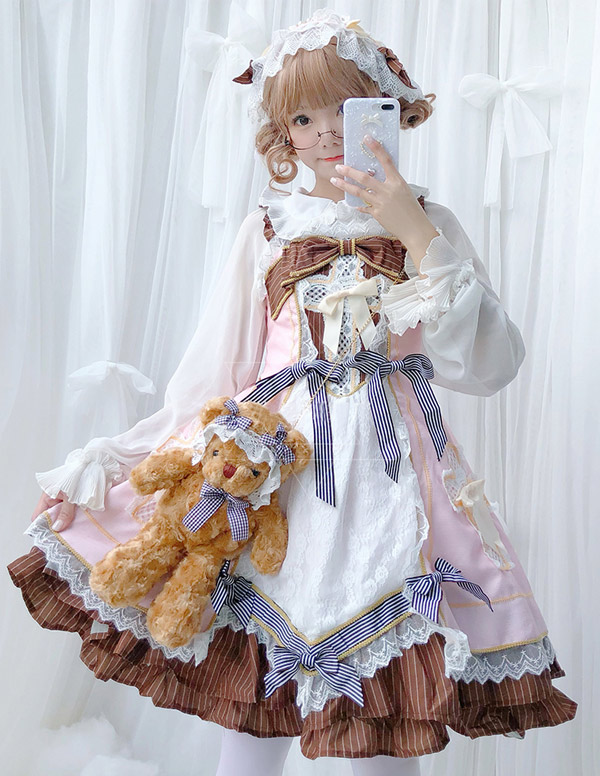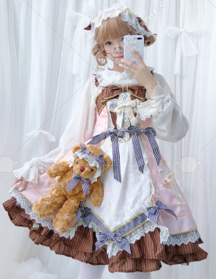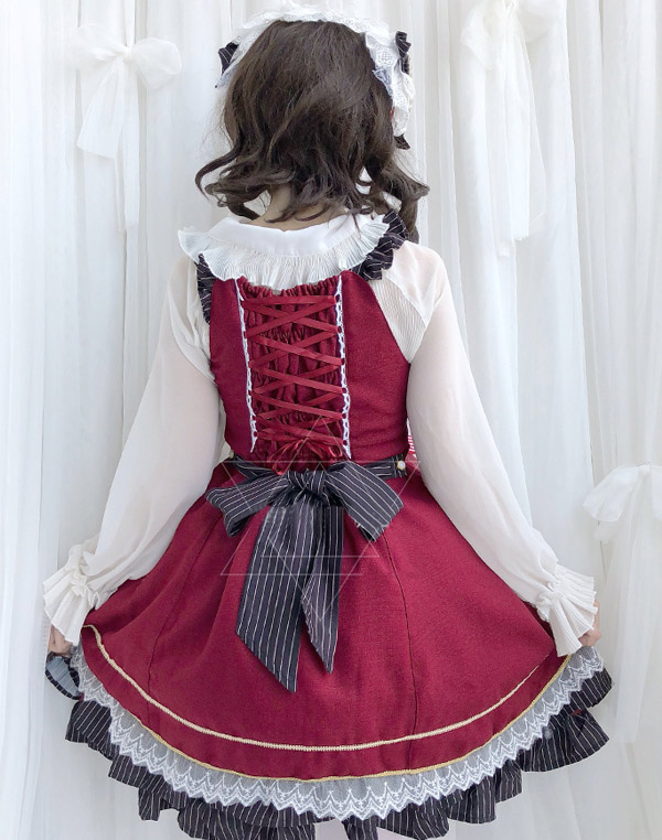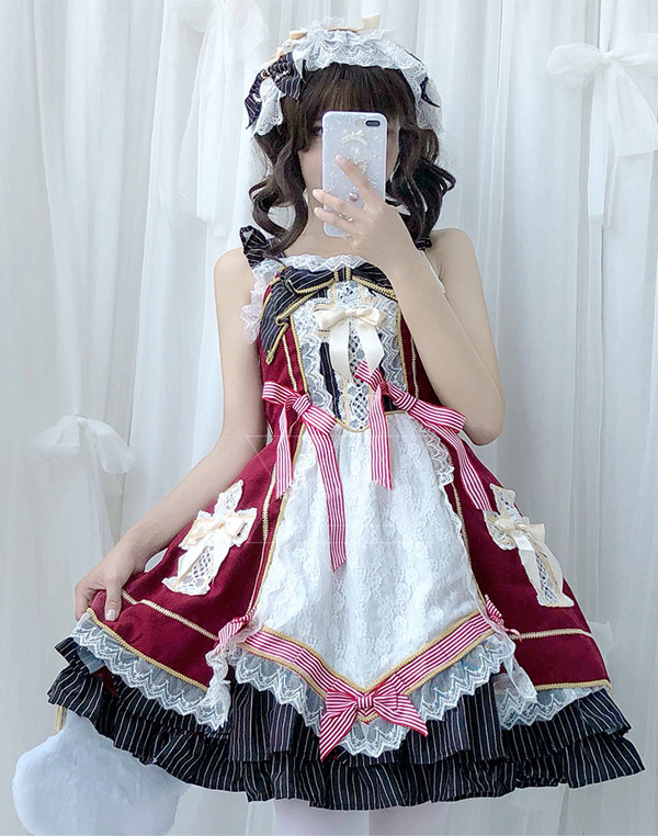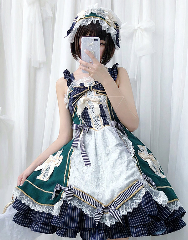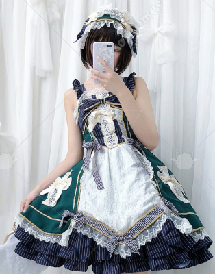 The costume includes a JSK dress and the head accessories are NOT included. It is made of polyester fiber.