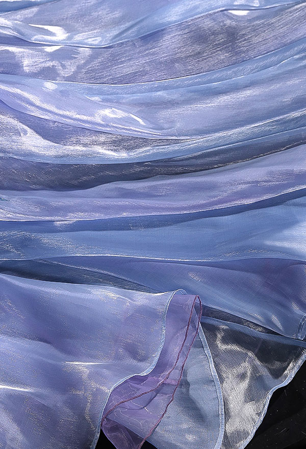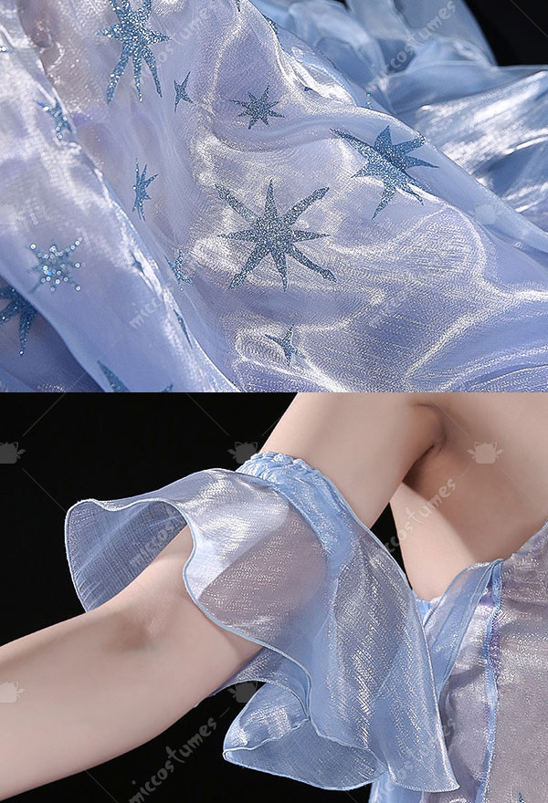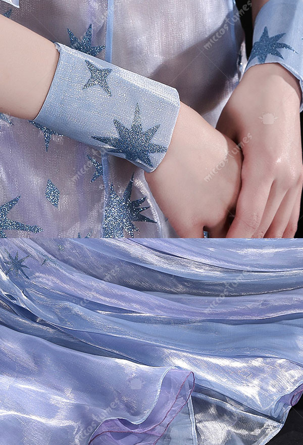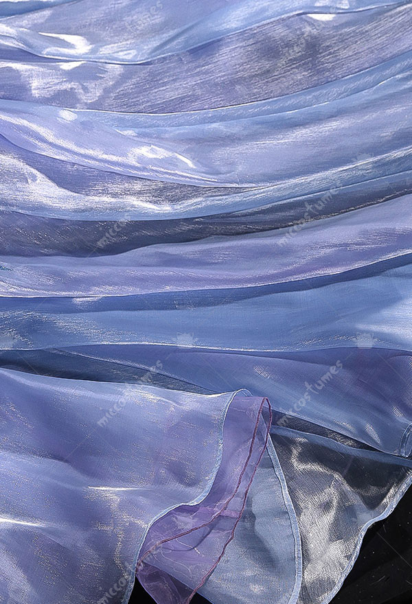 The costume includes dress, neck streamer, hand sleeves, headwear, pantyhose and transparent shoulder straps. It is mainly made of milk shreds.