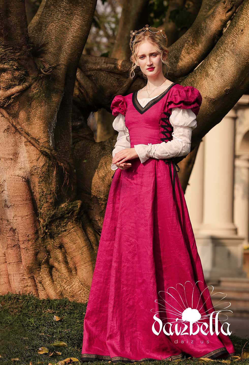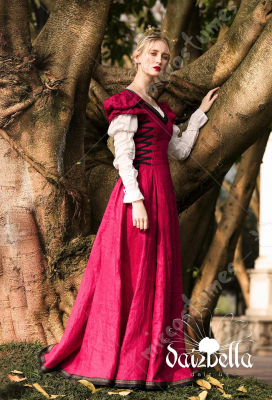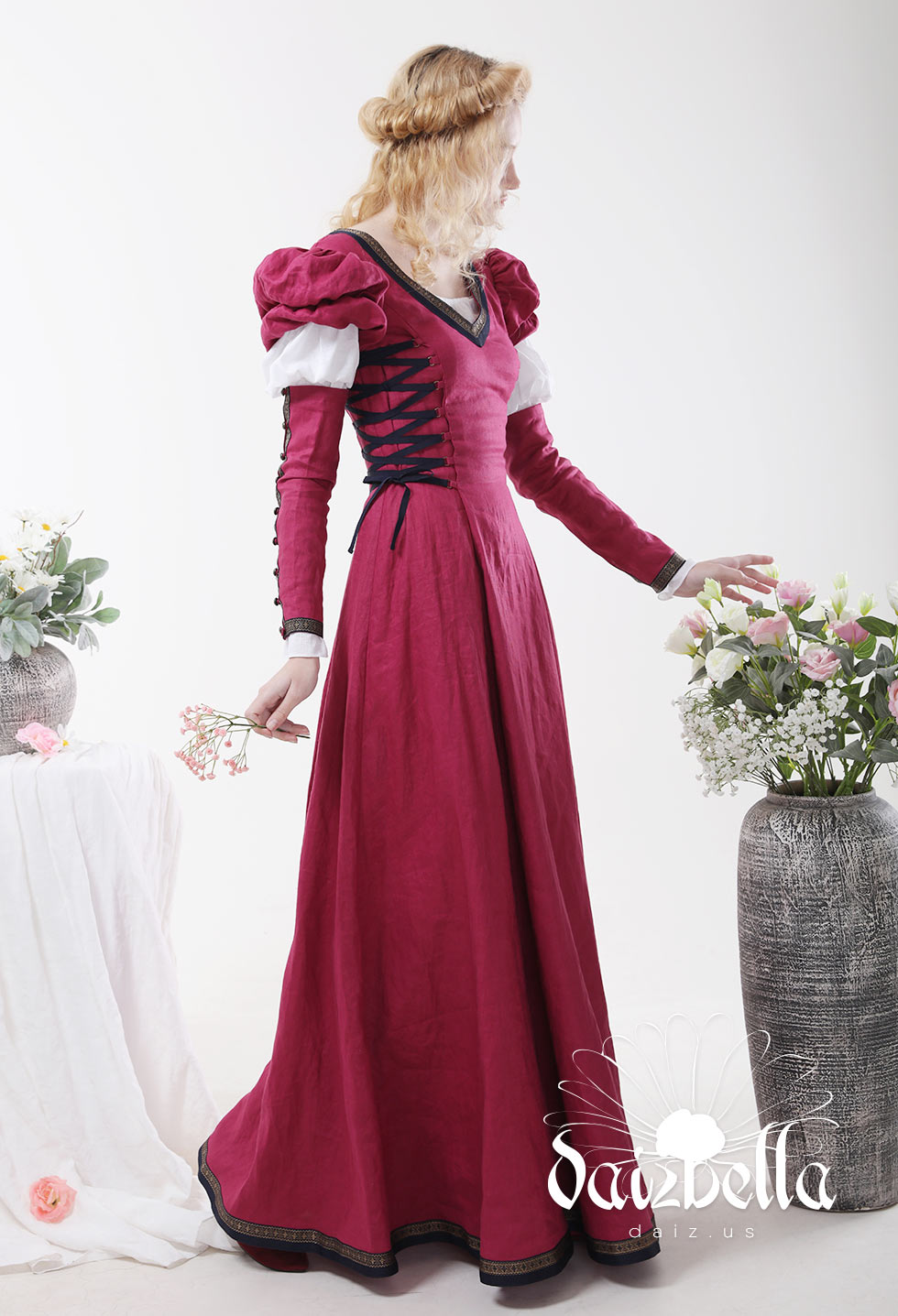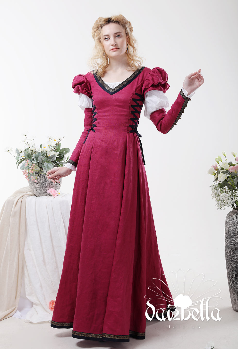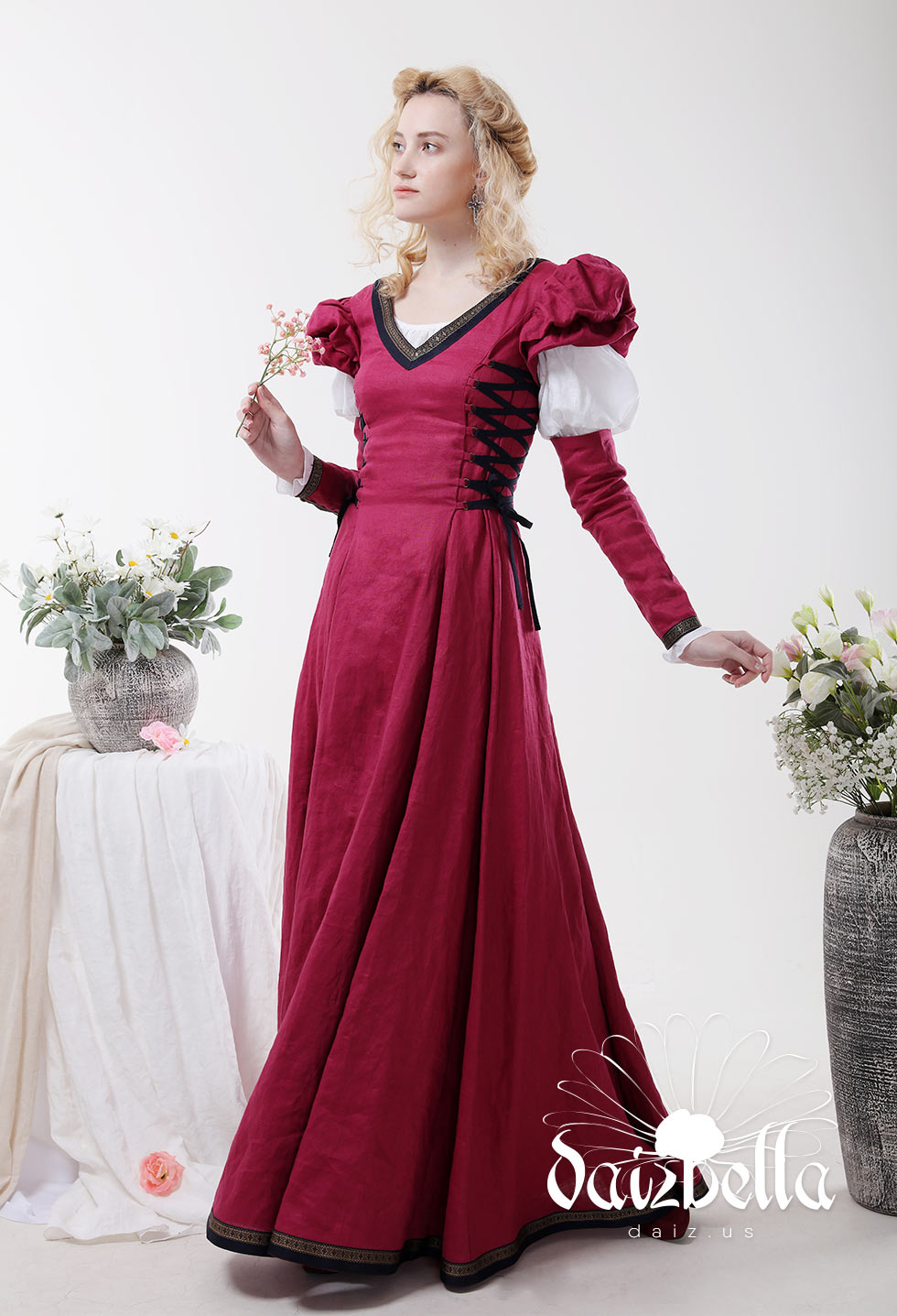 Rhyme of Autumn: Exclusive Medieval Renaissance Wedding Handmade Natural Linen Dress with Removable Sleeves