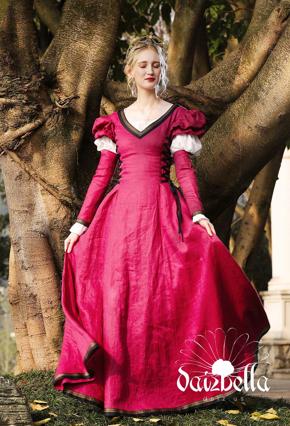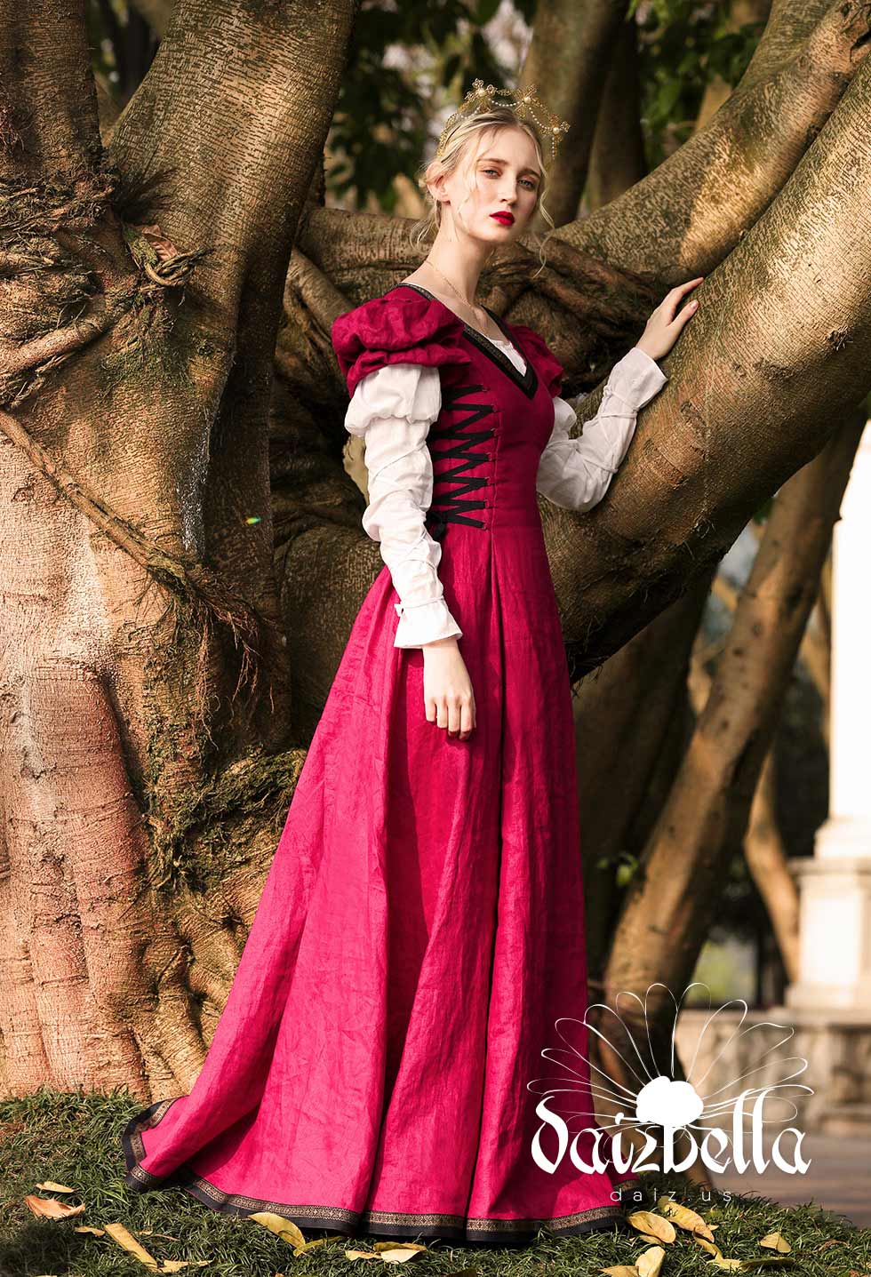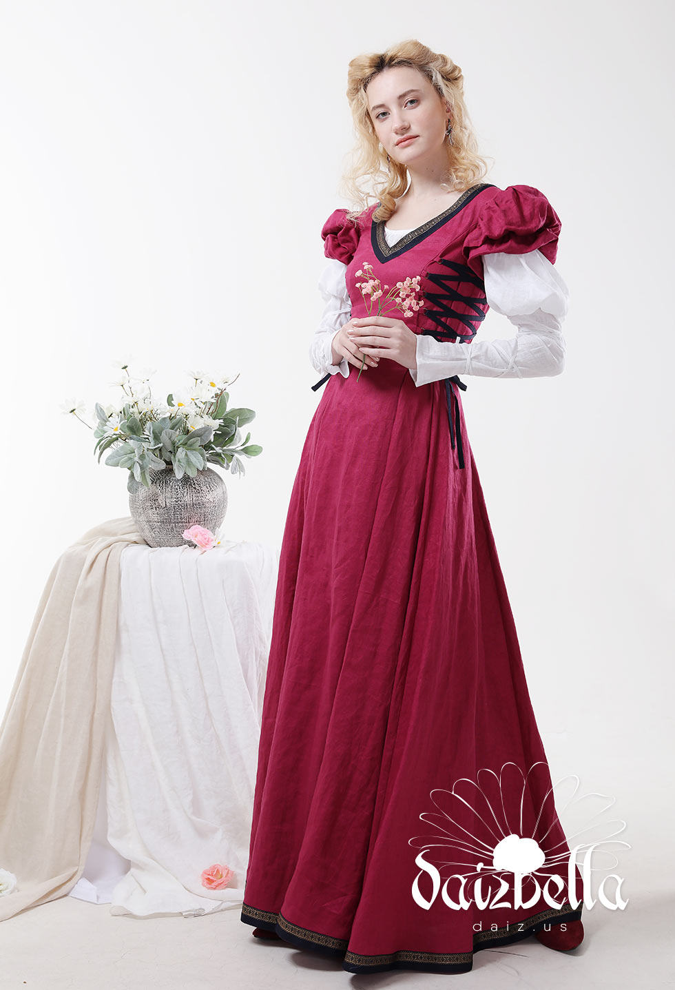 • It's inspired by the popular look and silhouette of wearing during the Renaissance. The retro color and the classic embroideries make the delicate dress.