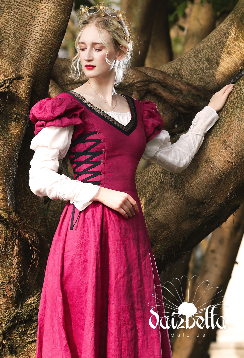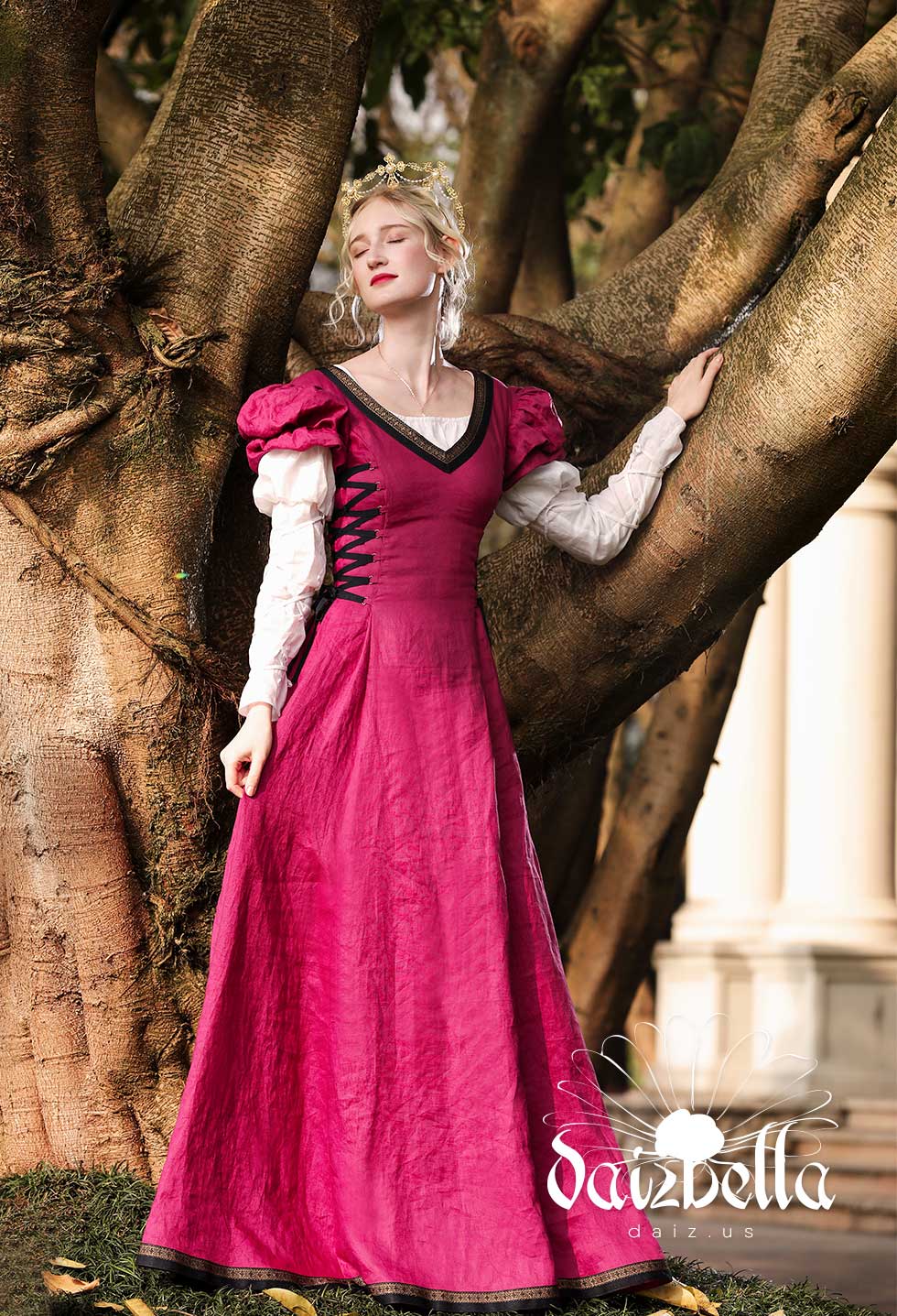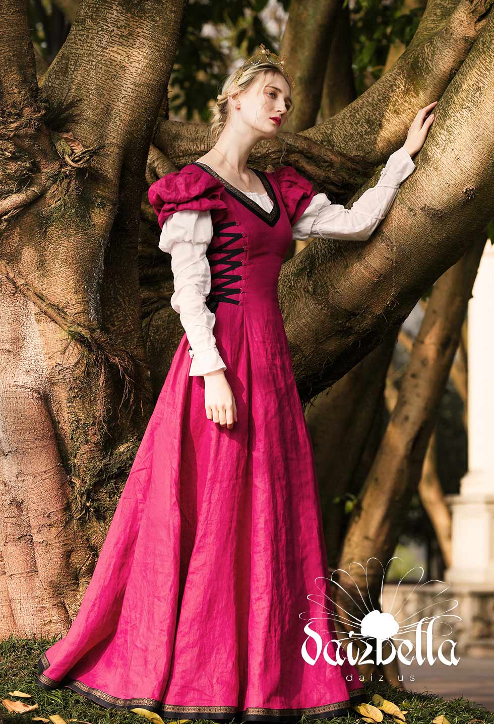 • It's inspired by the popular look and silhouette of wearing during the Renaissance. The retro color and the classic embroideries make the delicate dress.