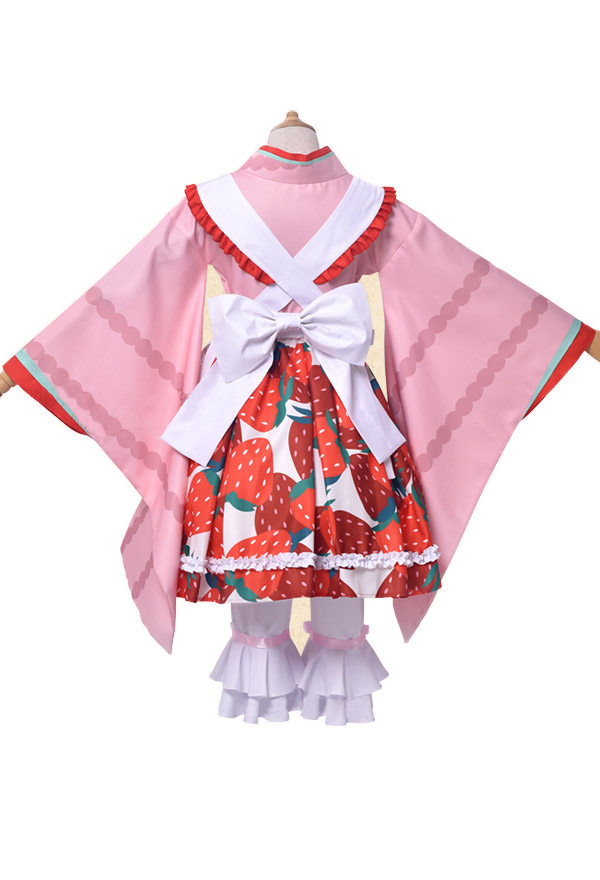 The costume includes top, skirt, apron, pants, headdress bow, back bow. The costume is made of uniform cloth.