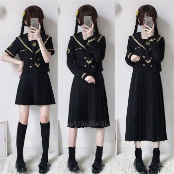 Japanese Korean Version JK Suit Woman School Uniform High School Sailor Navy Cosplay Costumes Student Girls Pleated Skirt