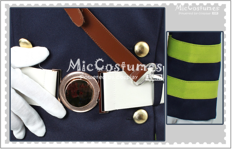The set includes coat, gloves, trousers, waist belt and shoulder belt.