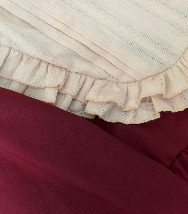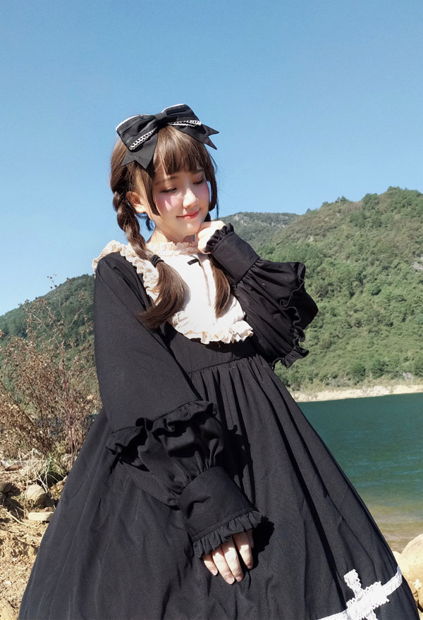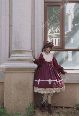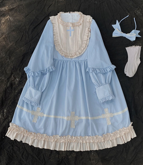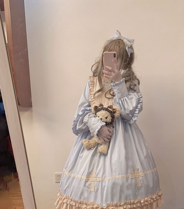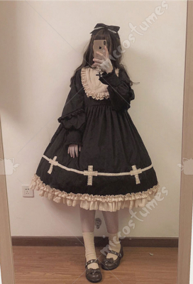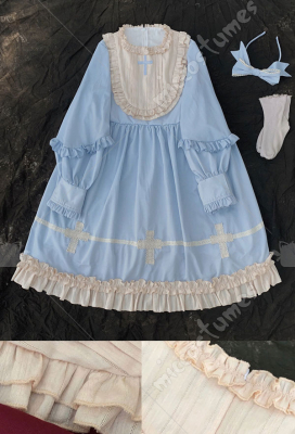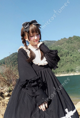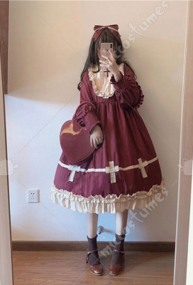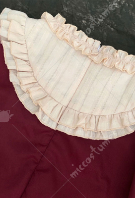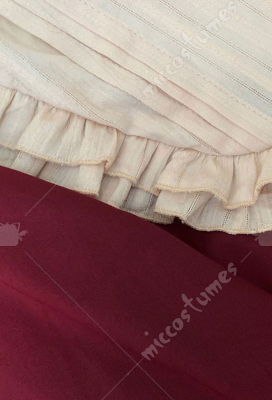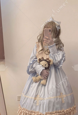 The costume includes dress and hair accessory. It is made of cotton, TR twill cotton and imitation tencel fabric.