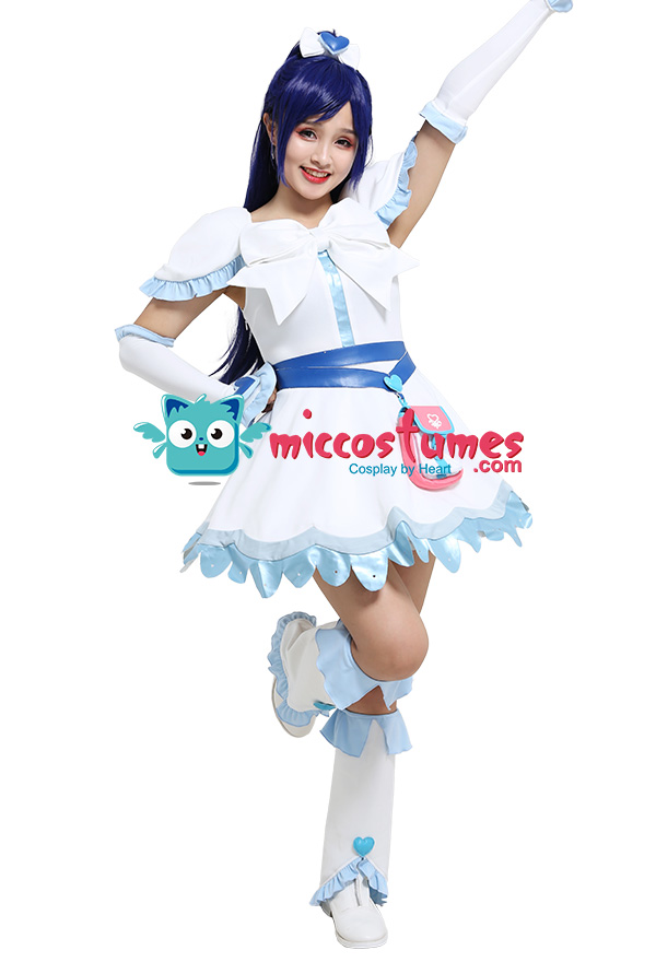 Costume Includes: dress, belt, arm covers, leg covers, bow headdress, petticoat, waist bag. Material: pu leather, lining cloth. Design Details: The outfits adopts spliced color-contrast elastic fabric, which pairs with wiast bag. The zipper is on the back. And the top is with shoulder pads inside, which looks more dimensional. The lace hem adopts colorful leather as the material, with punch caraft. Besides, the petticoat is also included. .jpg)