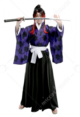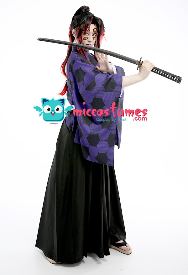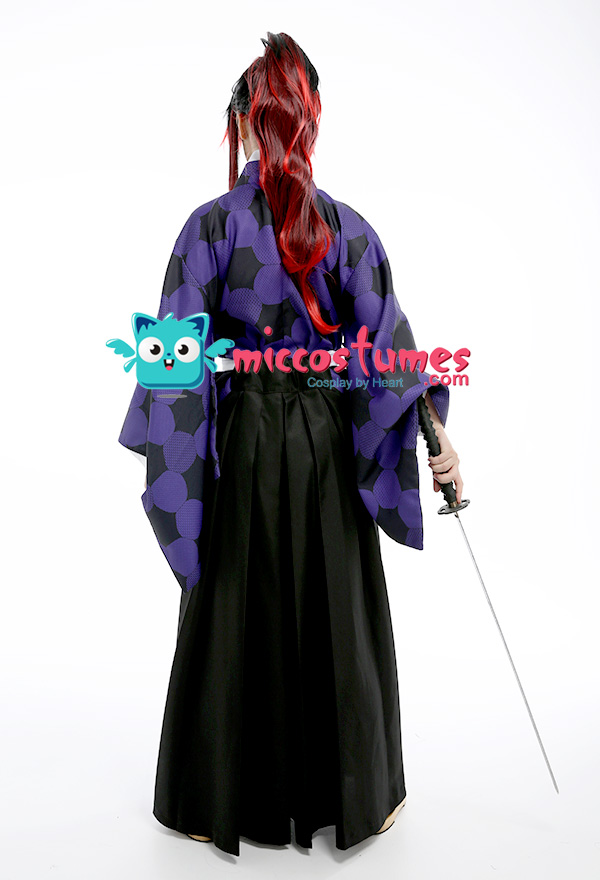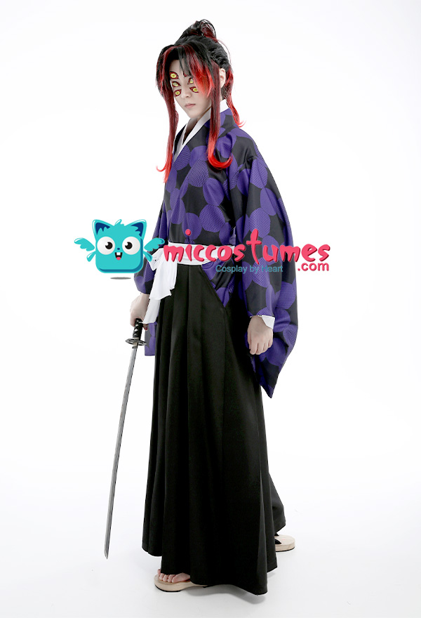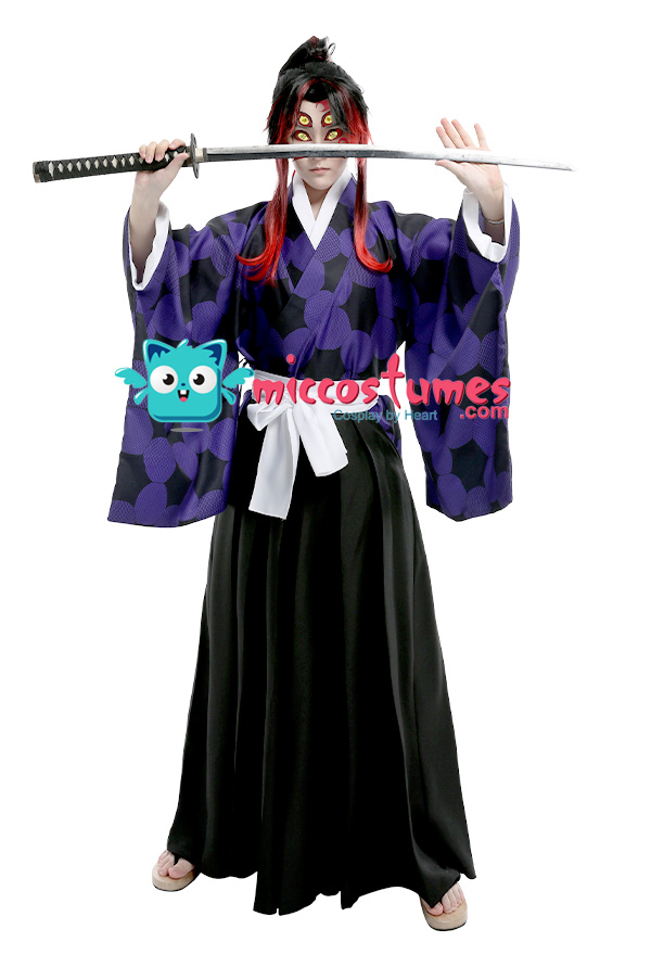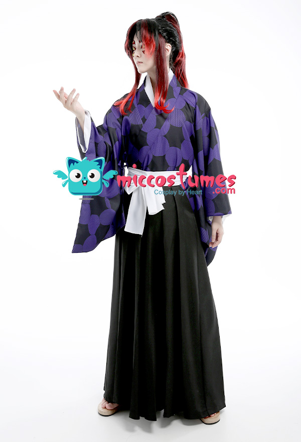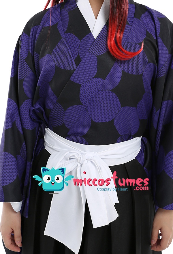 Costume Includes: top, pants. Material: uniform cloth. Design Details: This outfit is a kimono coat. The clothes is made of uniform cloth and digital printing design, and the pants and belt are also made of uniform cloth.