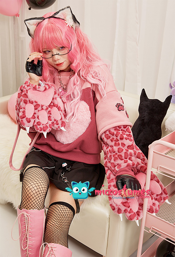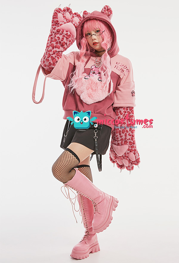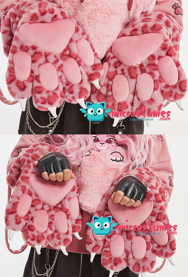 Note: It only includes one hoodie (included two detachable paw gloves and two straps). It doesn't contain any other accessories. We'll randomly give some small clips as the free gifts. Design Details: 1. Inspiration Source – The hoodie is designed with cat and leopard as the prototype. With the leopard ear hood and print and the furry cat paw gloves, it looks cute and cool. 2. Special Design – The detachable bag design furry paw is the highlight of this hoodie. The two long-sleeved paw gloves can be detached and used as two bags. 3. Soft & Cozy Materials – The main hoodie is made of high-quality sweatshirt fabric, which is breathable, light and comfortable. It’s specially suited for autumn and spring. The paw gloves are made of furry material, touching soft and comfortable. 4. Notes – There may be some floating fluff on the surface of the hoodie. We suggest you clean the stains with wet towel as soon as possible once your hoodie is stained. Please do not wash frequently. It cannot be machine washed. Please do not add any chemical products when washing. For the Paw Gloves Design: 1. The paws are filled with cotton cushions and provided with heart designs to offer a cute and real look. 2. Hidden zippers are provided on the sleeves and inside the gloves’ wrists. You can remove the gloves via the zippers on the sleeves or unzip the gloves’ wrists to let your hands free. 3. The strap on the gloves can be a fashion icon and can also be used to sling the bag design gloves over your shoulders. 4. The material used for gloves is super-soft and cozy to keep your hands always in a warm state.