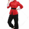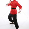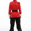 Costume Includes:tops, trousers, belt. Material: uniform cloth, satin. Design Details: For easier to wear and off, the front of the jacket is buckled and the back of the belt is Velcro with adjustable tension.