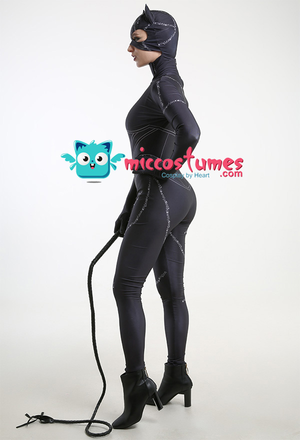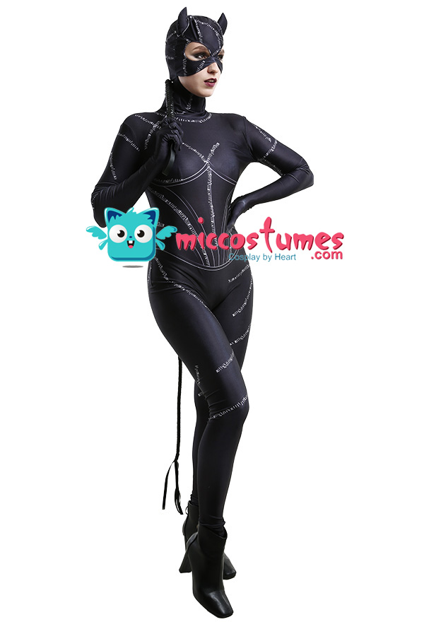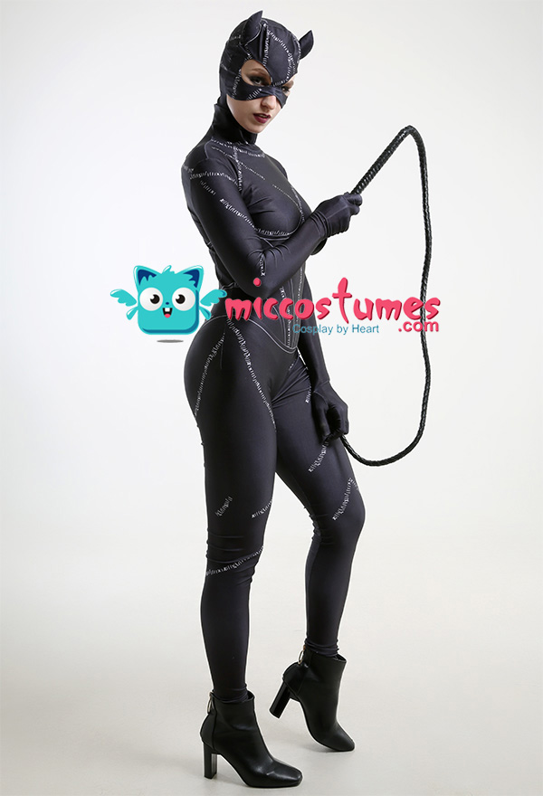 Costume Includes: bodysuit, headgear, whip. Material: polyester. Design Details: The whole outfit is made of printed polyester, and the whip is also included in this outfit.