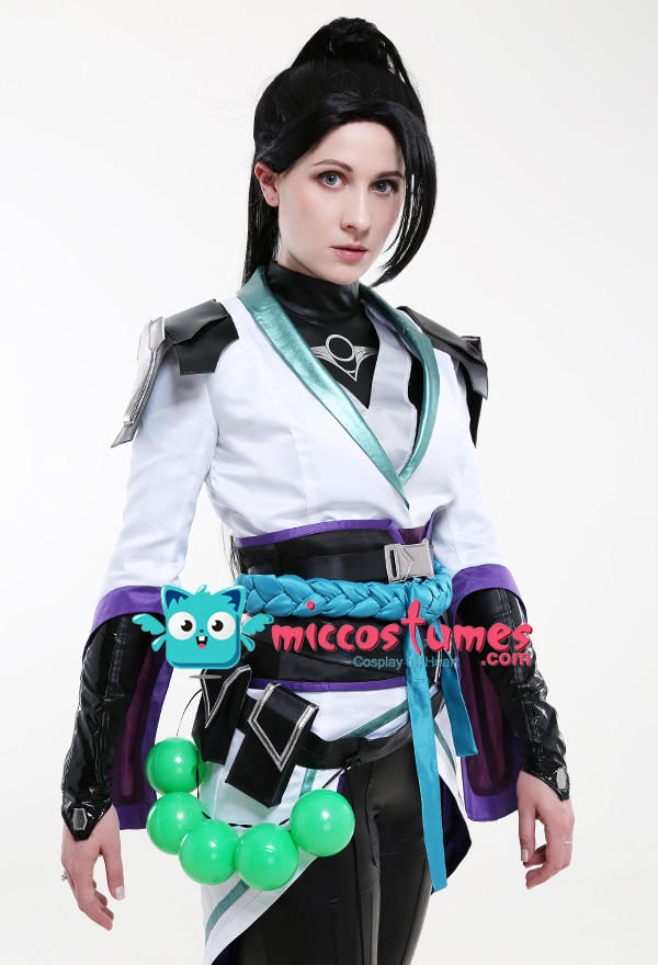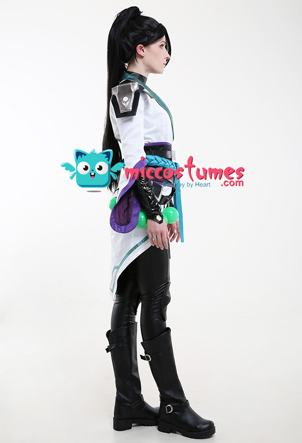 Costume Includes: Inner Coat, Pants, Coat, Corset, Belt set( with Waist Bag *2), Waist Accessories( Sea Ball Accessories *5), Belt, Cotton Belt. Materials: PU leather, satin, EVA( for pants, coat, belt set, belt). Design Details: There is some delicate heated paint on the collar and shoulder armors, and the knitting belt feels comfortable on touch.