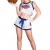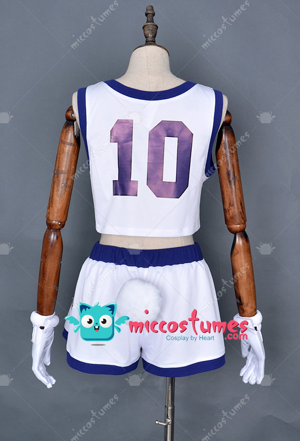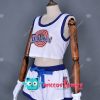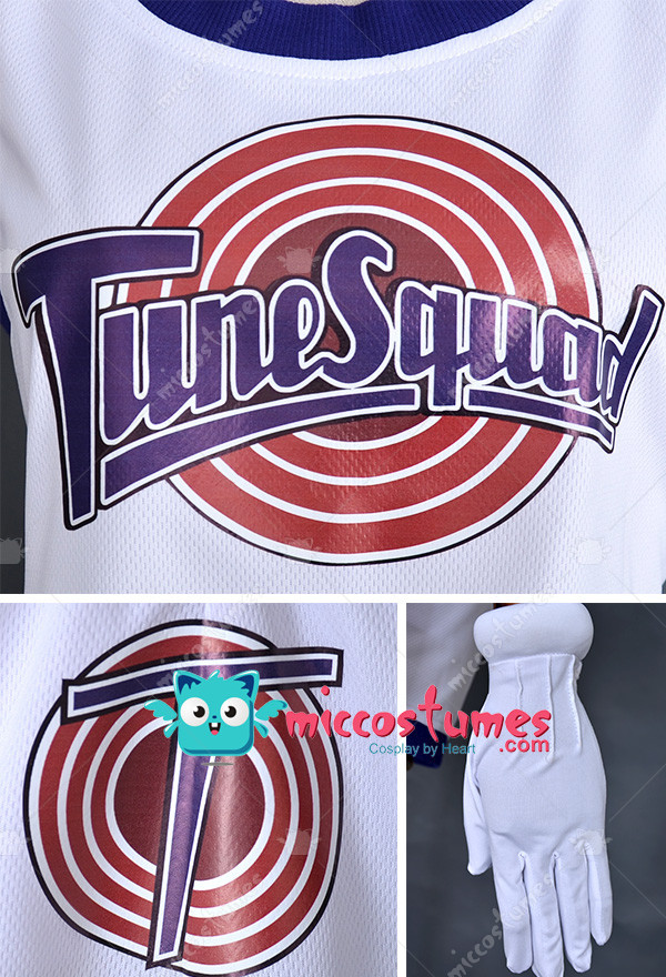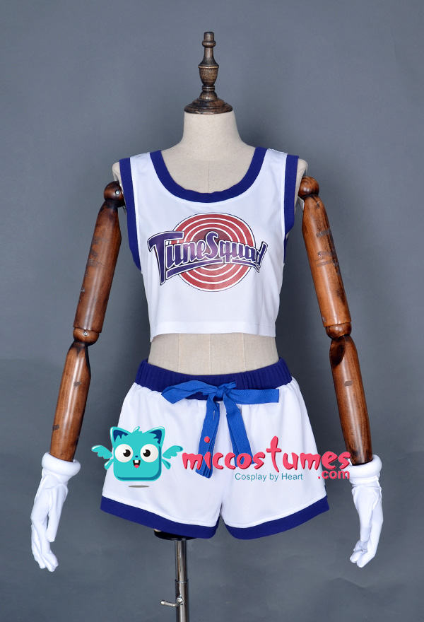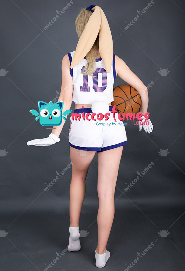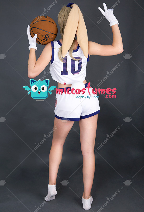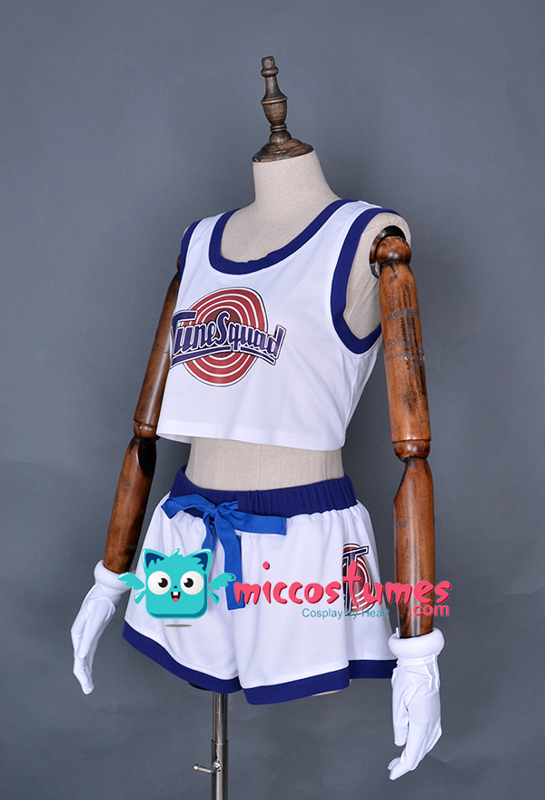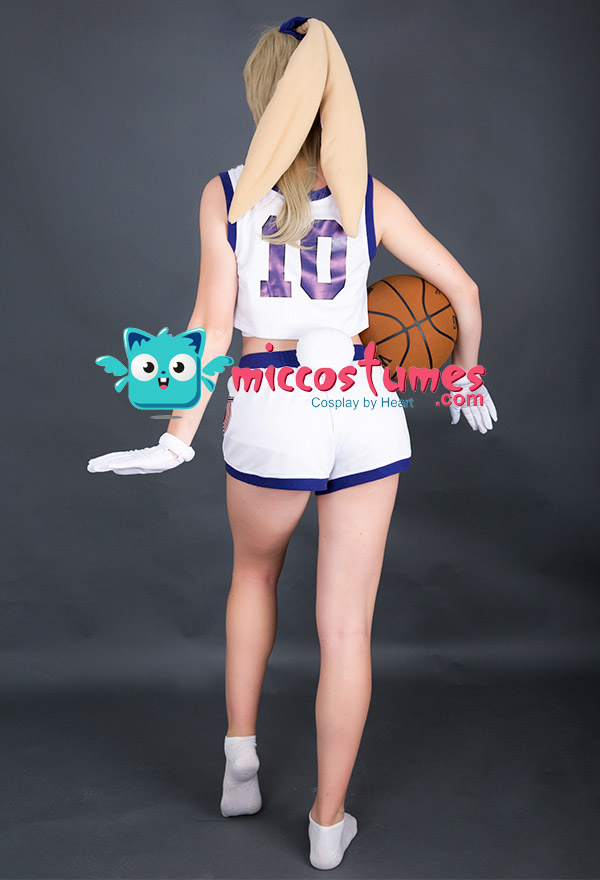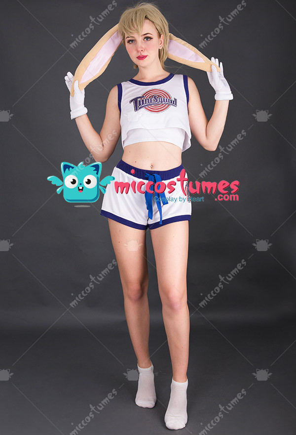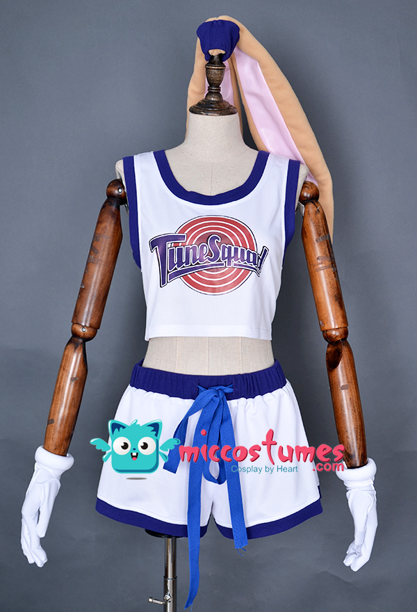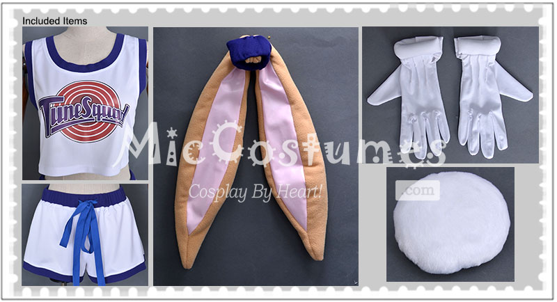 Includes: top, shorts, two gloves, fake tail, fake ears and hairband Materail: Mesh fabric Nice Details: Perfect for Lola Bunny cosplay, Halloween, special occasions, etc. The lola bunny crop top is printed with the tune squad logo. The basketball tune squad shorts have elastic waist with strings to tighten.