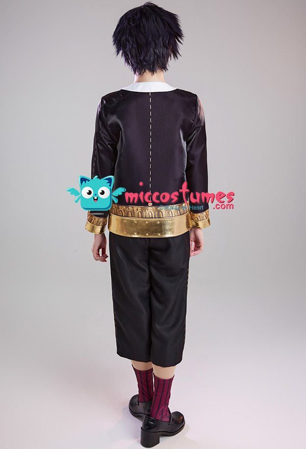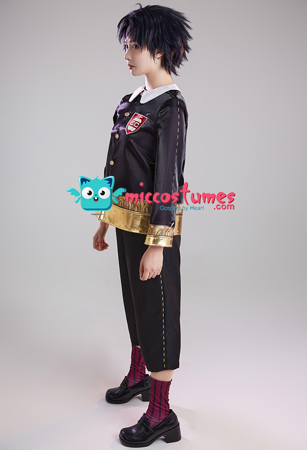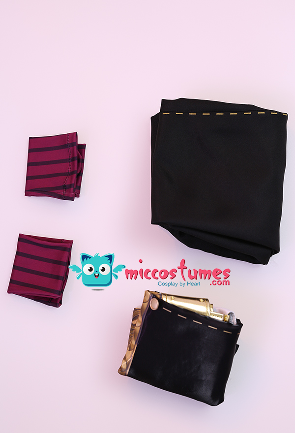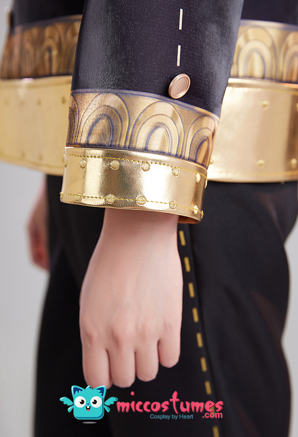 Design Details: This uniform set is heavily printed and embroidered. The top is made of satin digital printing stitched with gold pu leather embroidery process, the pants are made of twill fabric, the pants are elastic waist and comfortable to wear.