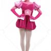 The costume includes jumpsuit, gloves*2, stockings, fluffy ball*2. It is made of spandex, scuba fabric, grenadine.