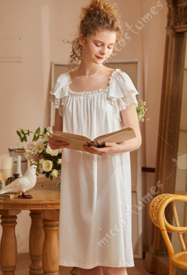 Costume Includes: nightdress. Material: cotton. Attention: Recommend hand wash. If machine washing is required, please use a laundry bag and avoid sun exposure.