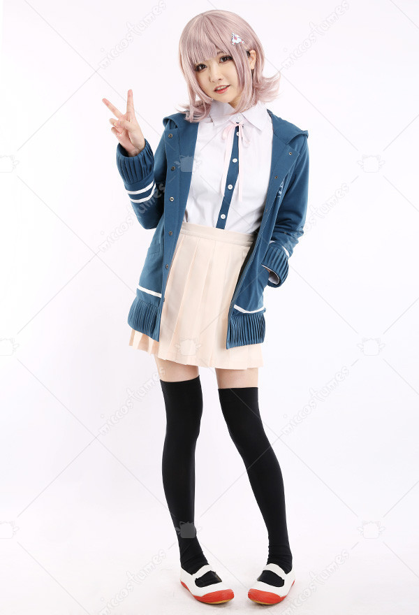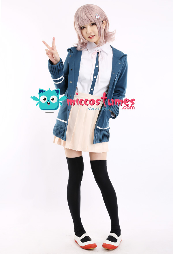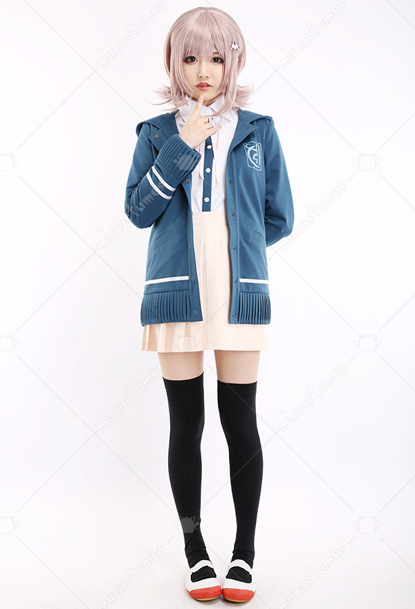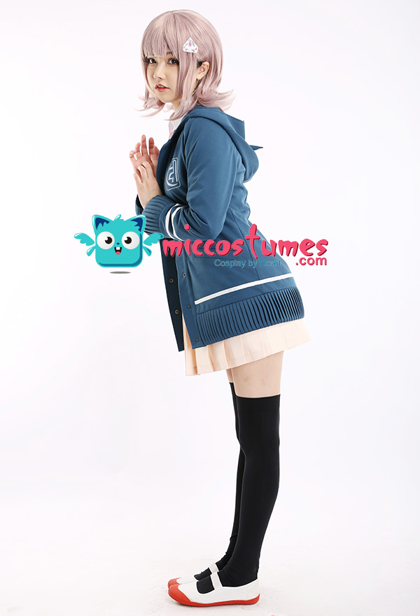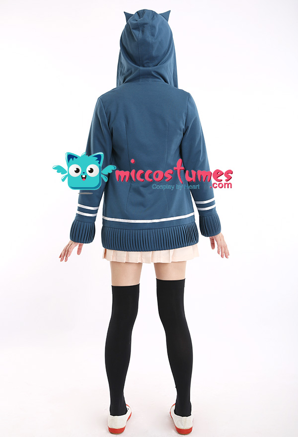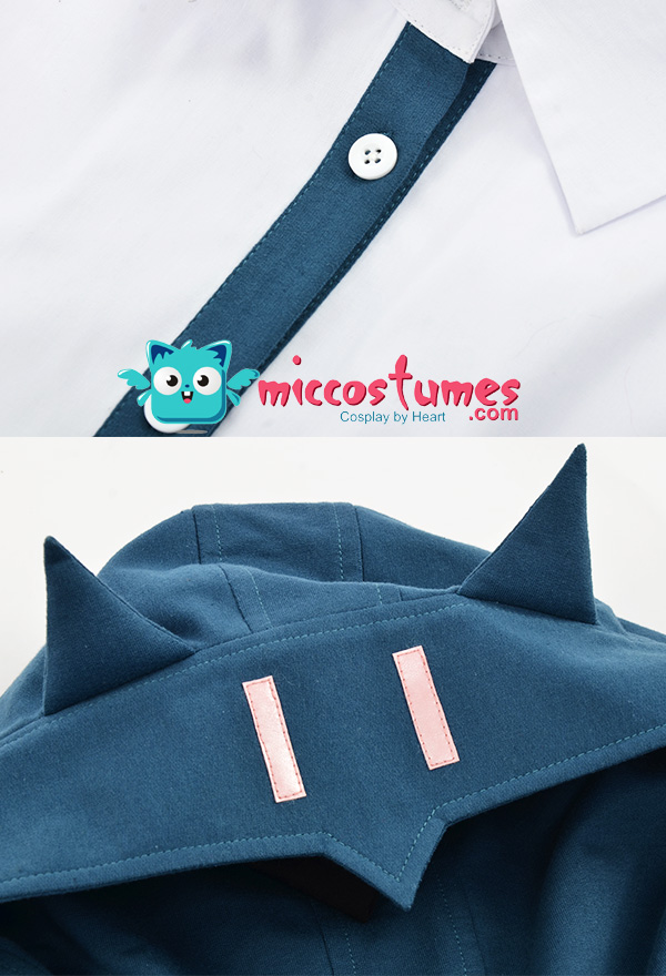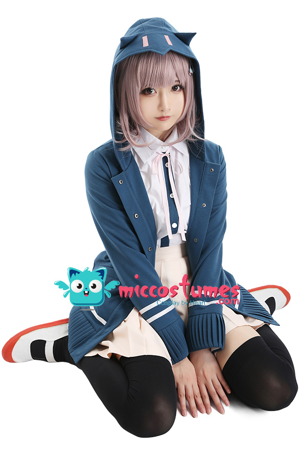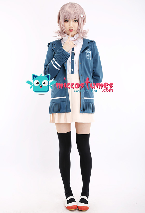 The costume includes hair clip*1, tie, shirt, coat, skirt, stockings. It is made of PU leather, polyester, shirt fabric, lining, PVC.