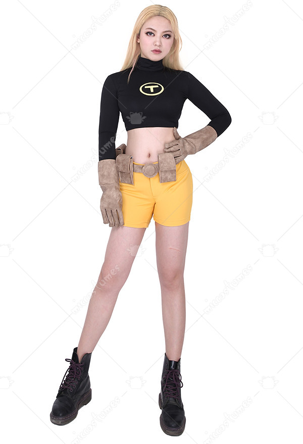 This superheroine cosplay costume is inspired by Terra. Make to Order. It is not an official DC Comics product, not approved by or associated with DC Comics, but carefully manufactured by KISIBE Studio. Please understand that some parts of the accessories are different from the image. There may be some minor alterations.