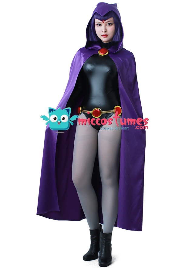 This Super Heroine Halloween Cosplay Costume Inspired by Raven. It is not an official DC Comic product, not approved by or associated with DC Comic, but carefully manufactured by KISIBE Studio. The crotch part of the jumpsuit is designed with elastic band so that the privacy will not be exposed.
