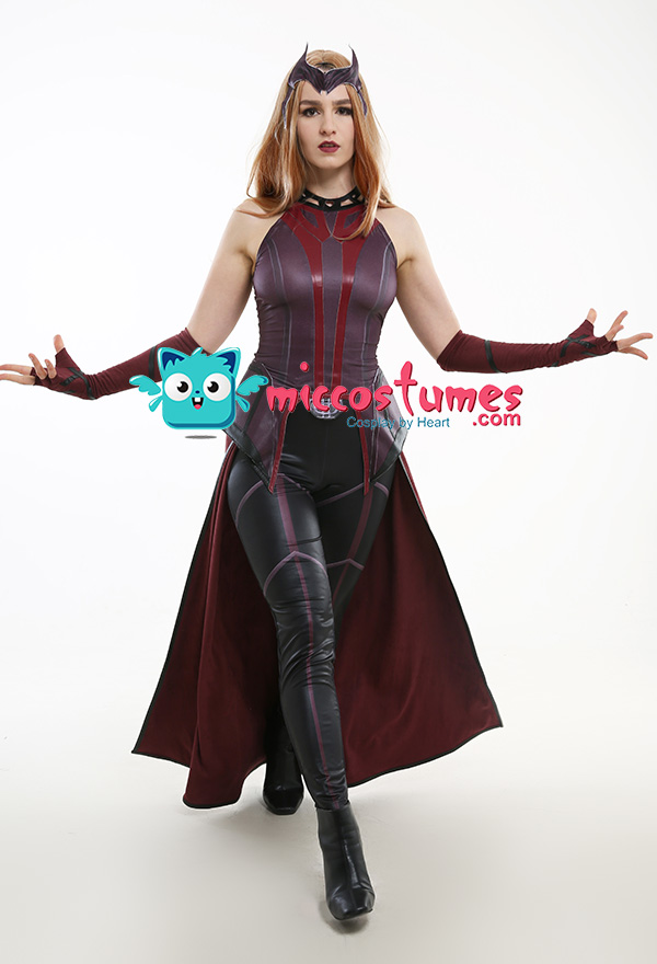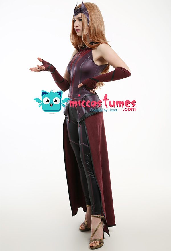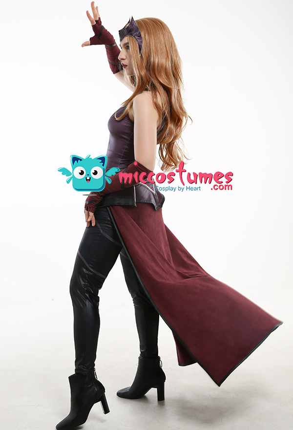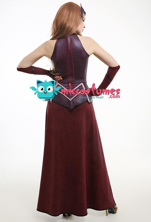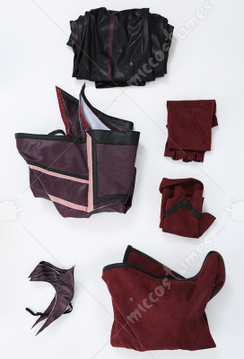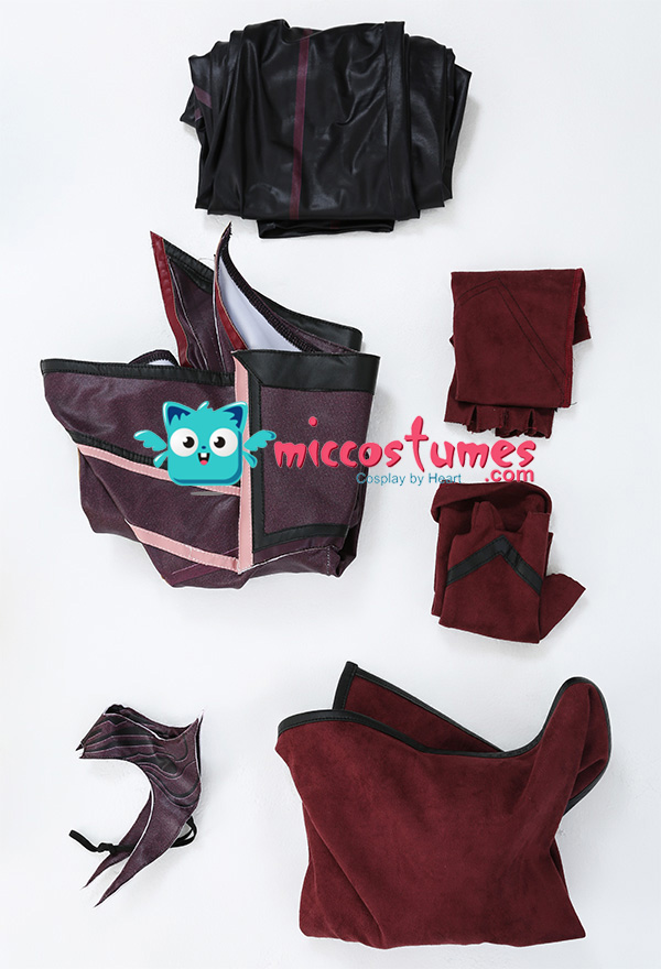 Costume Includes: inner coat, outer skirt, pants, long gloves*2, headdress. Material: pu leather, suede, aluminum wire ( for headdress ). Design Details: The headdress, inner coat and pants are all made of elastic digital printed craft. The inner coat is with a zipper on the back middle part. And the outer skirt adopts exquisite fabric, thin suede is spliced with the leather part.